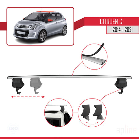 Citroen C1 (AB40) 2014-2021 ace4 Car Roof Rack Cross Bar Grey Aluminium 2 Bars