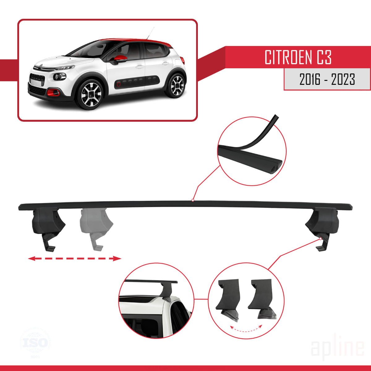 Citroen C3 III (SX/SY) 2016-2023 ace4 Car Roof Rack Cross Bar Black Aluminium 2 Bars
