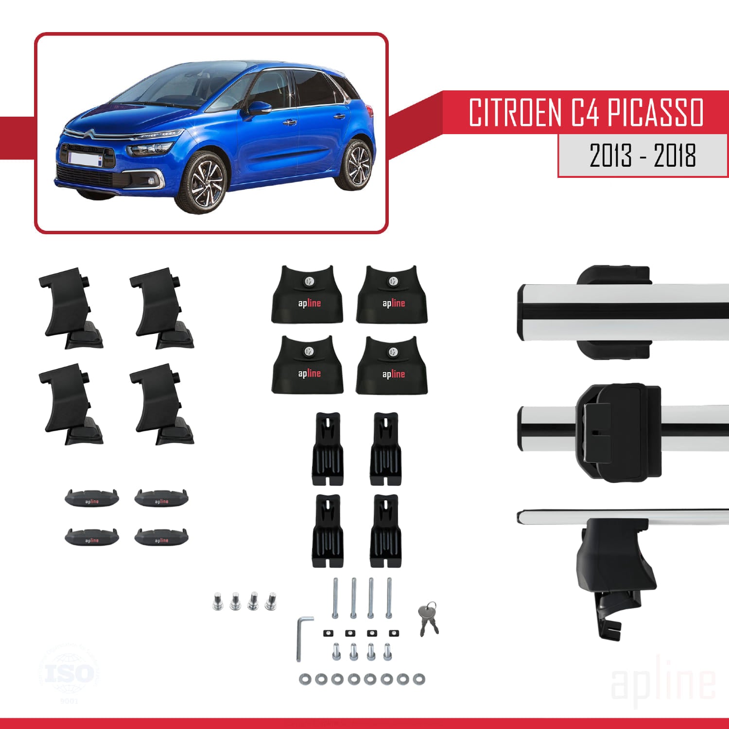 Citroen C4 Picasso 2 2013-2018 ace4 Car Roof Rack Cross Bar Grey Aluminium 2 Bars