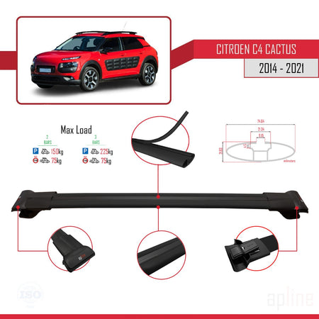 Citroen C4 Cactus 2014-2021 fly Model Car Roof Rack Cross Bar Black Aluminium 2 Bars