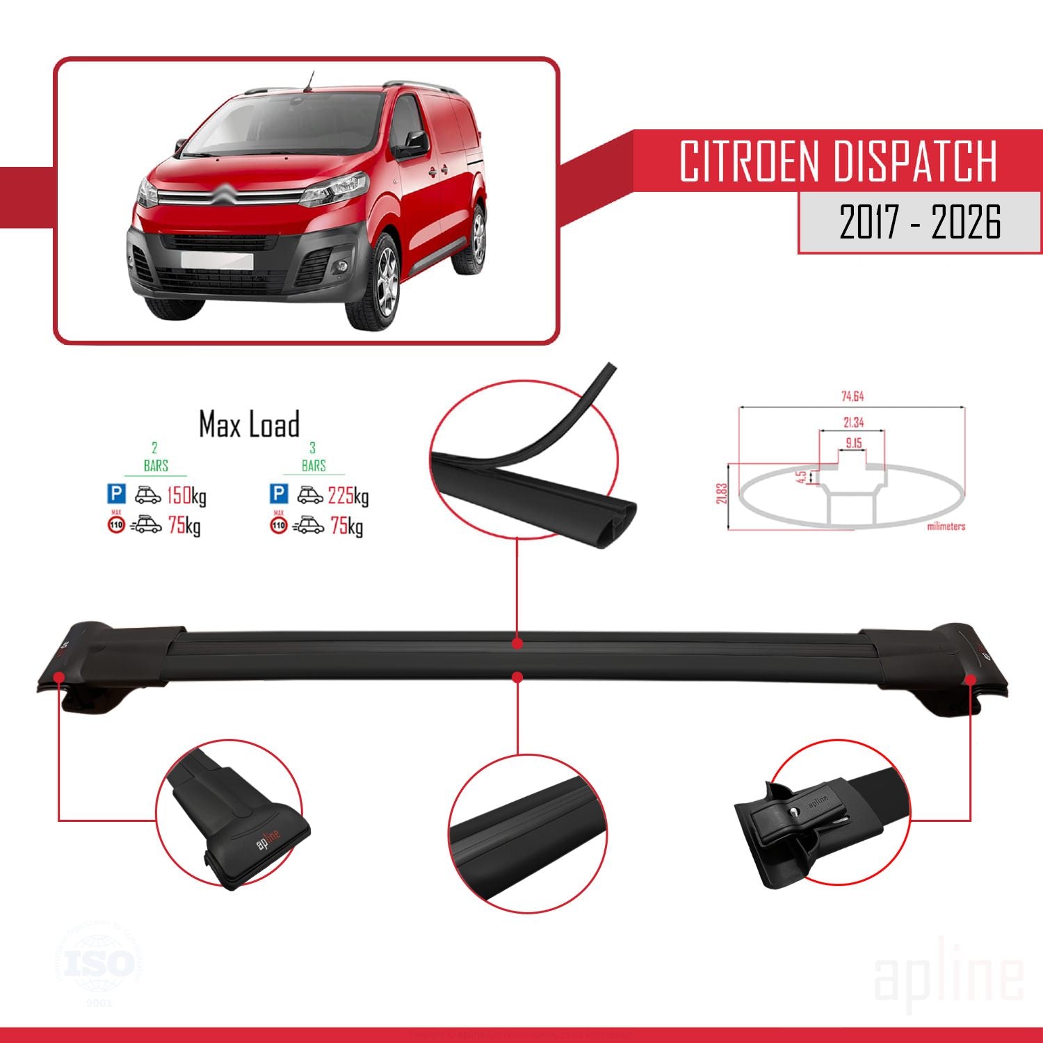Citroen Dispatch (K0) 2017-2025 fly Model Car Roof Rack Cross Bar Black Aluminium 2 Bars