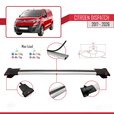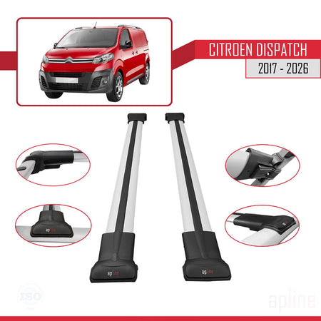 Citroen Dispatch (K0) 2017-2025 fly Model Car Roof Rack Cross Bar Grey Aluminium 2 Bars