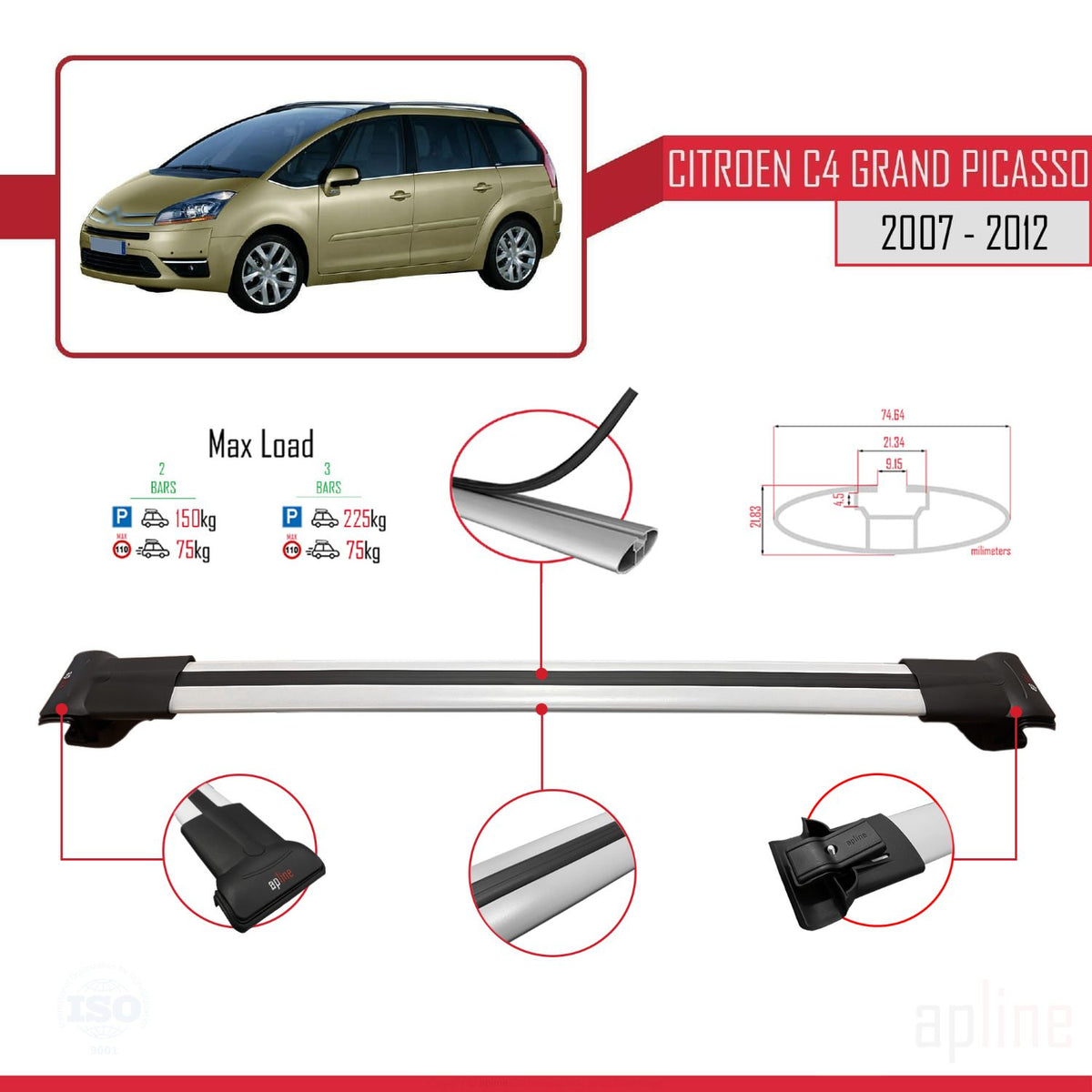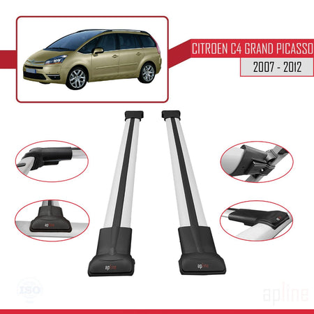 Citroen Grand C4 Picasso 2007-2012 fly Model Car Roof Rack Cross Bar Grey Aluminium 2 Bars