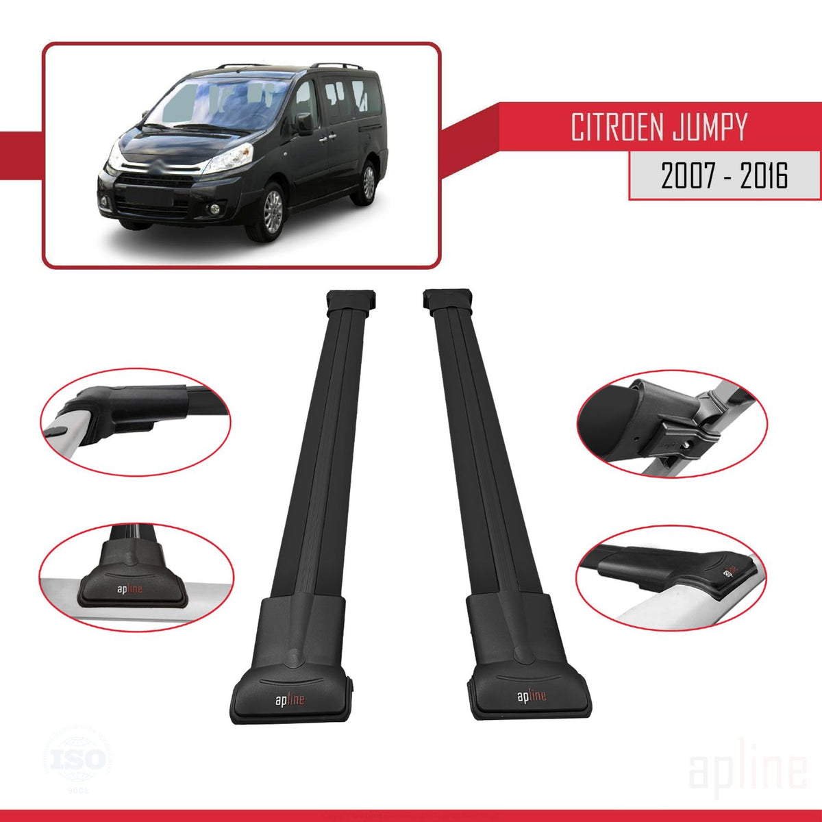 Citroen Jumpy 2 (G9) 2007-2016 fly Model Car Roof Rack Cross Bar Black Aluminium 2 Bars