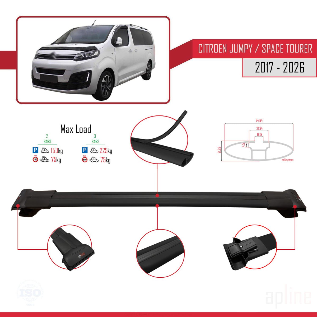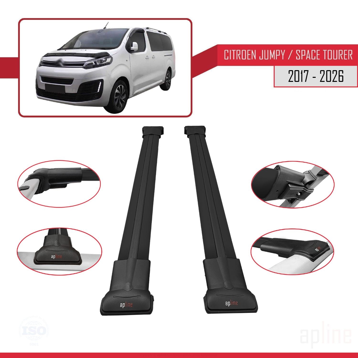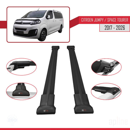 Citroen Jumpy 3 (K0) Space Tourer 2017-2025 fly Model Car Roof Rack Cross Bar Black Aluminium 2 Bars