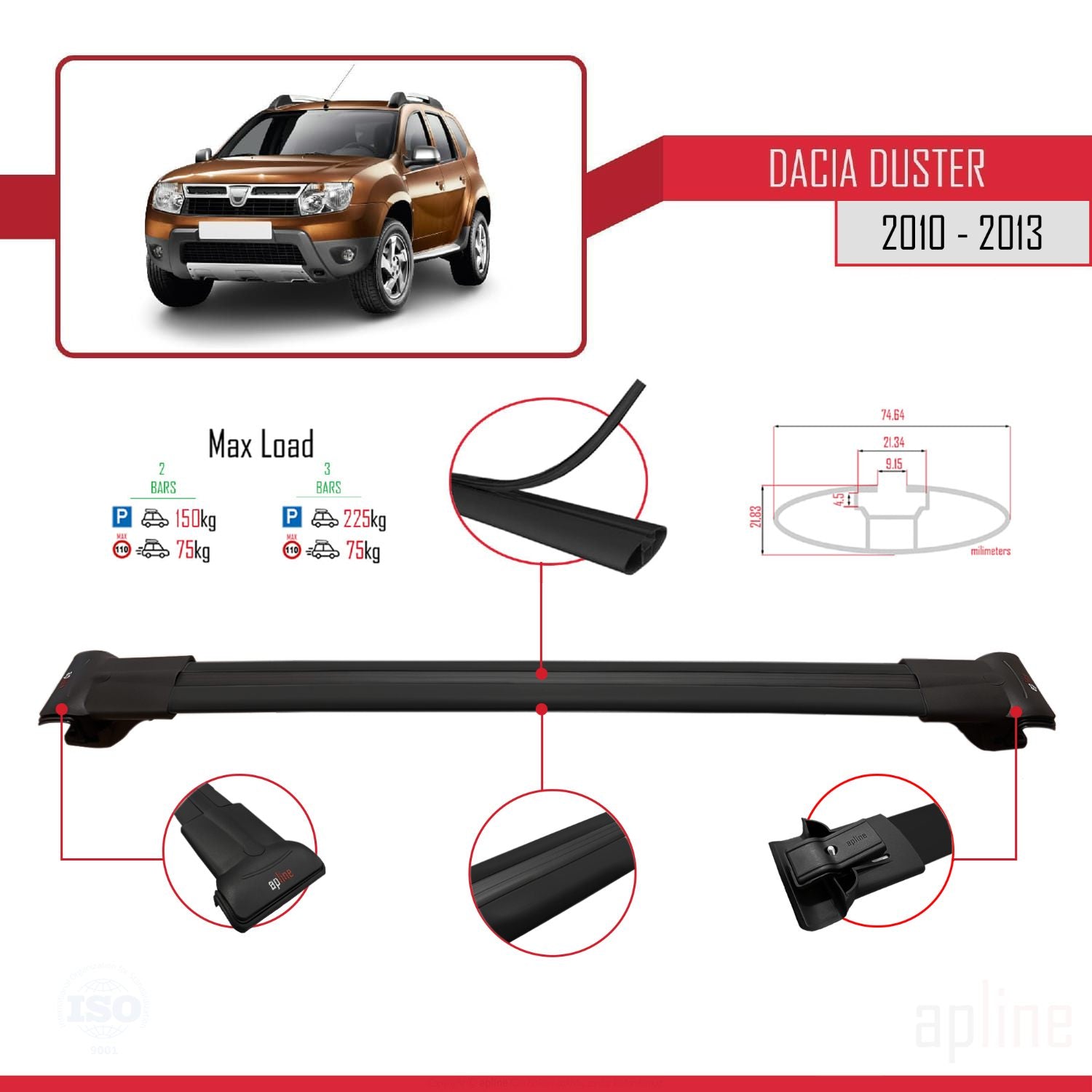 Dacia Duster (HS) Pre-Facelift 2010-2013 fly Model Car Roof Rack Cross Bar Black Aluminium 2 Bars
