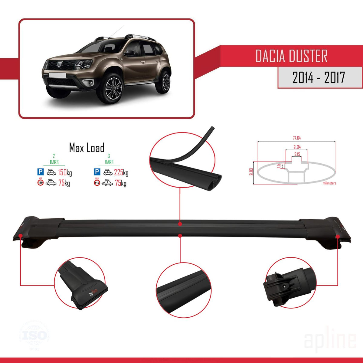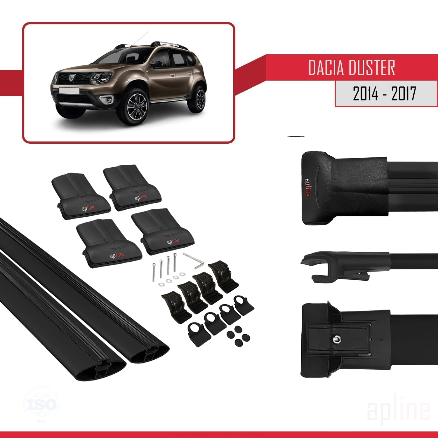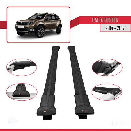 Dacia Duster (HS) Post-Facelift 2014-2017 fly Model Car Roof Rack Cross Bar Black Aluminium 2 Bars