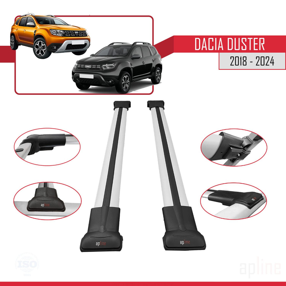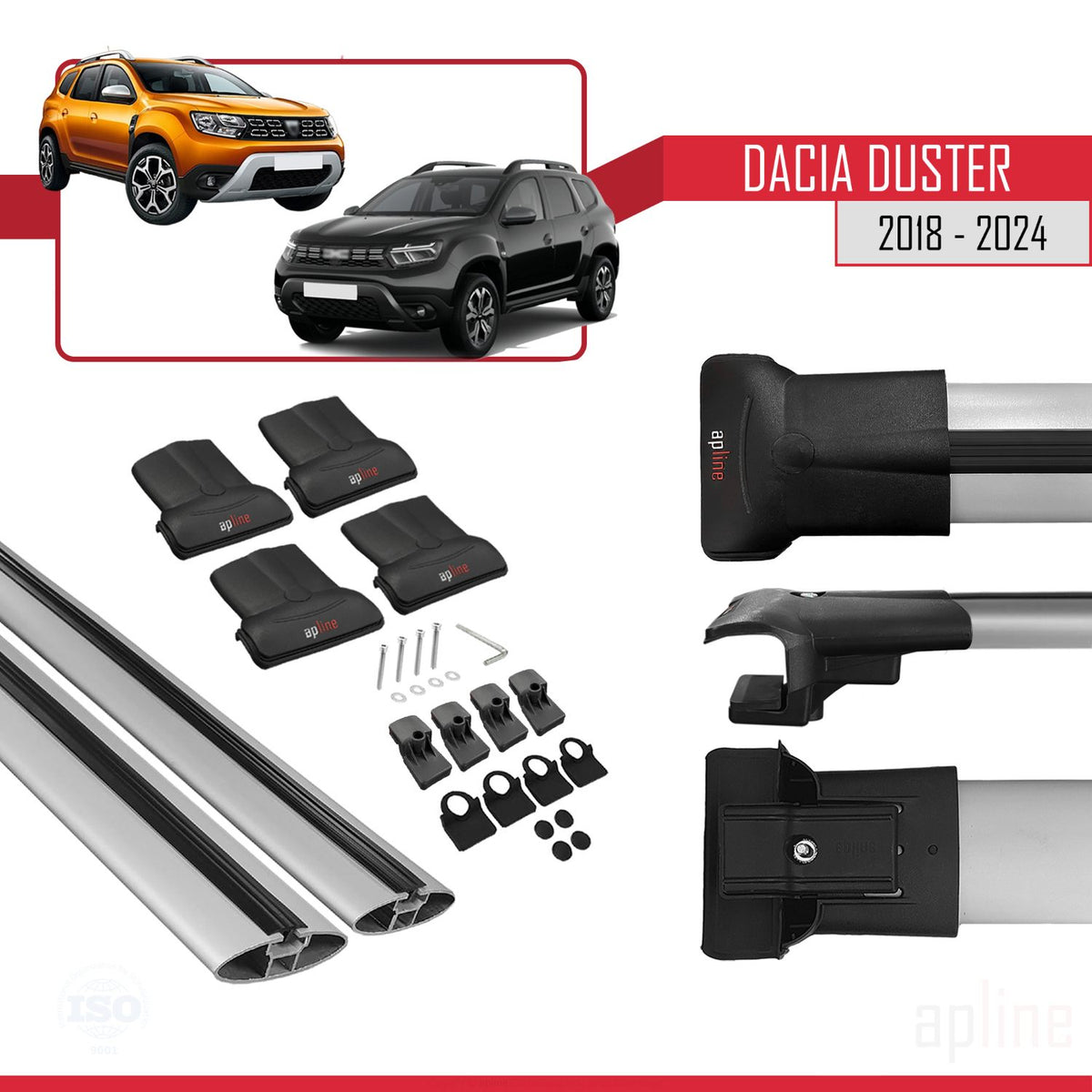 Dacia Duster 2 (HM) 2018-2024 fly Model Car Roof Rack Cross Bar Grey Aluminium 2 Bars