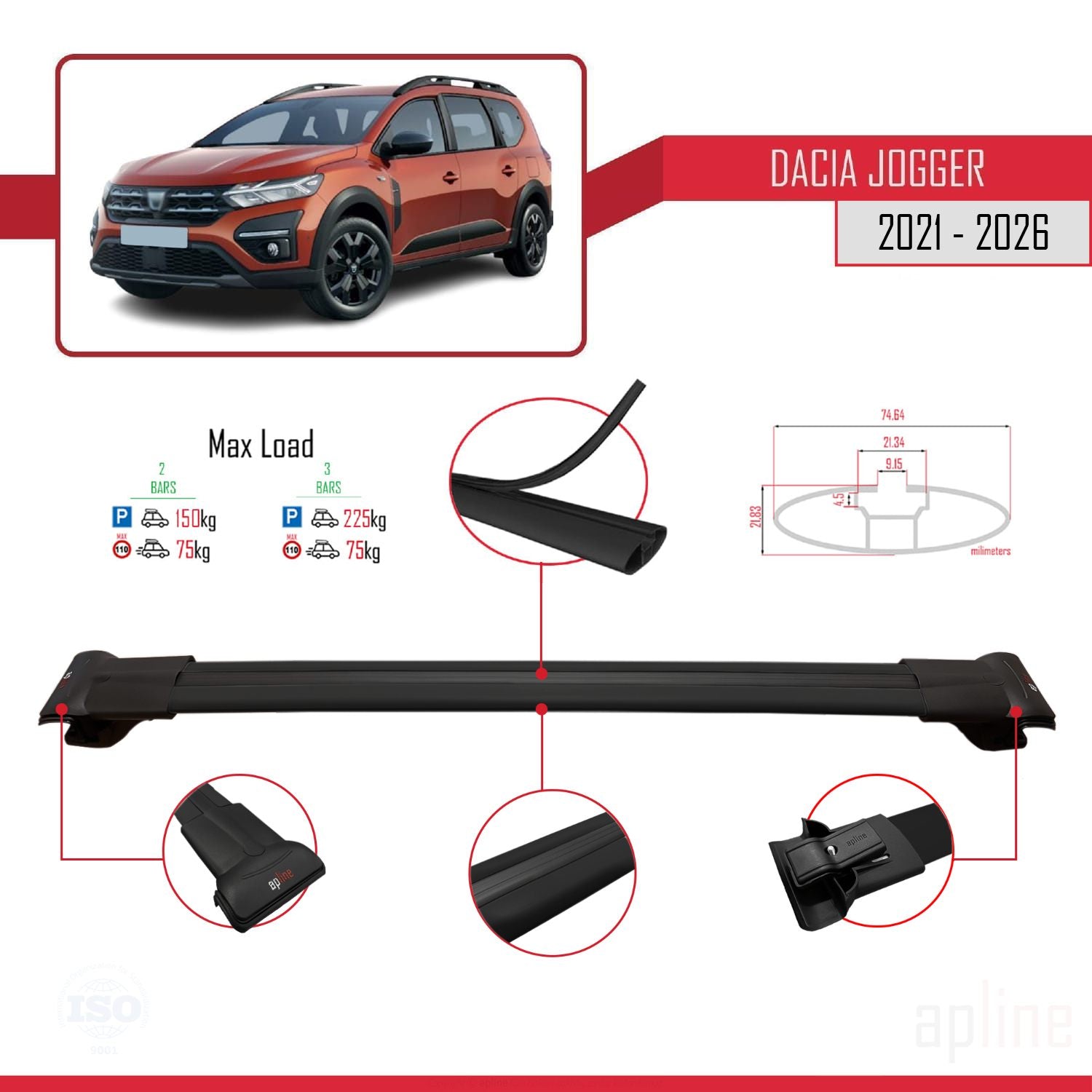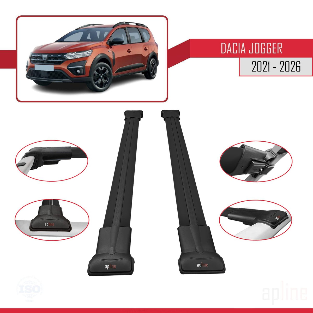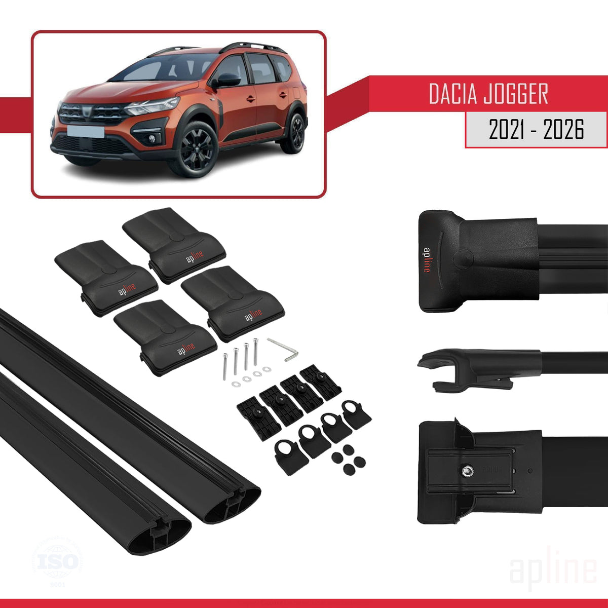 Dacia Jogger 2021-2025 fly Model Car Roof Rack Cross Bar Black Aluminium 2 Bars