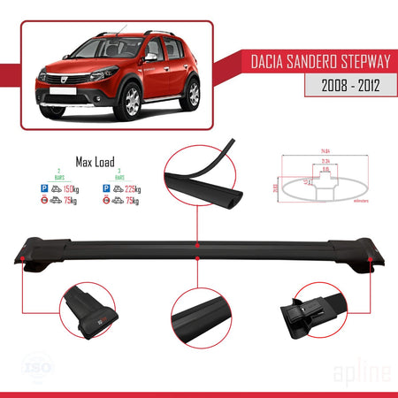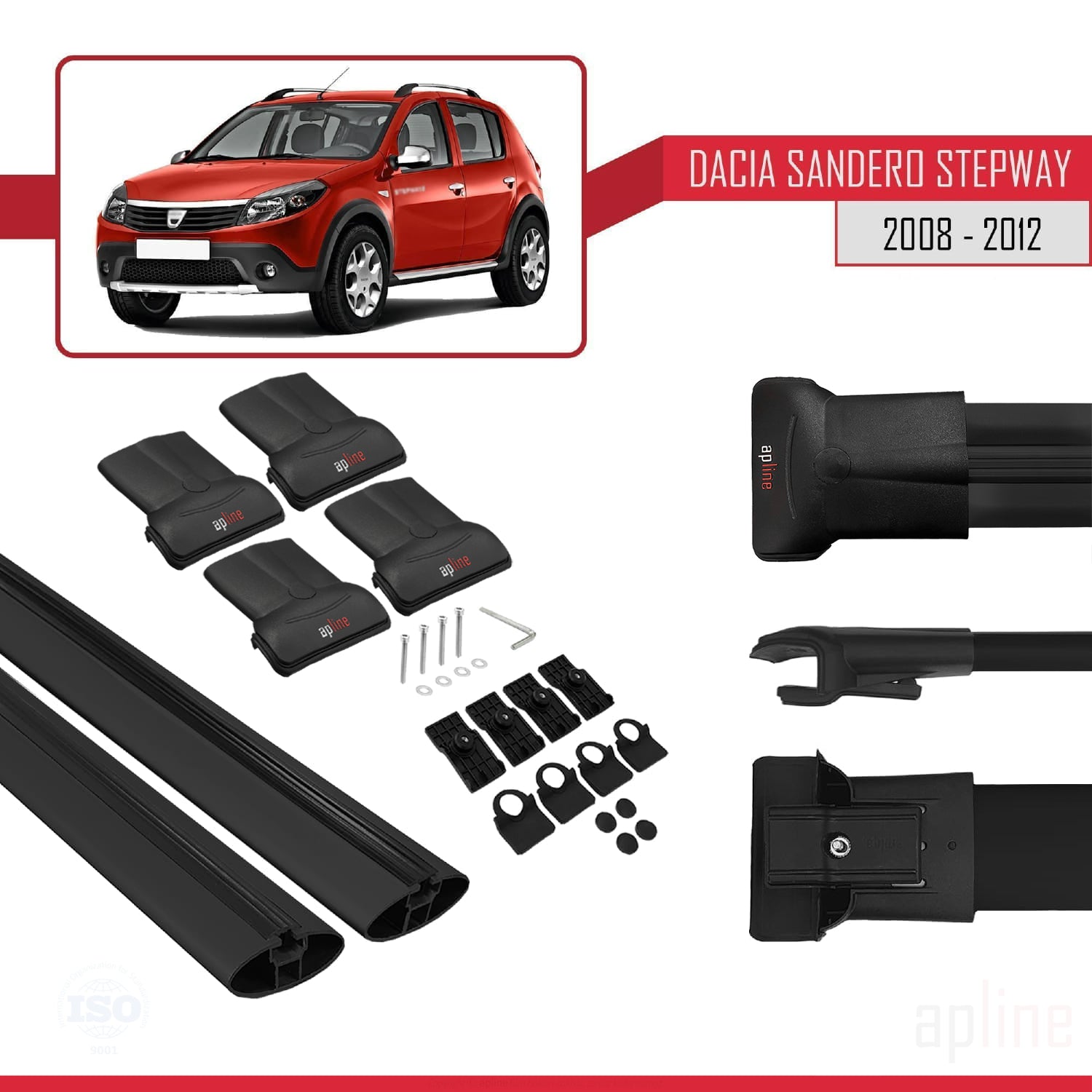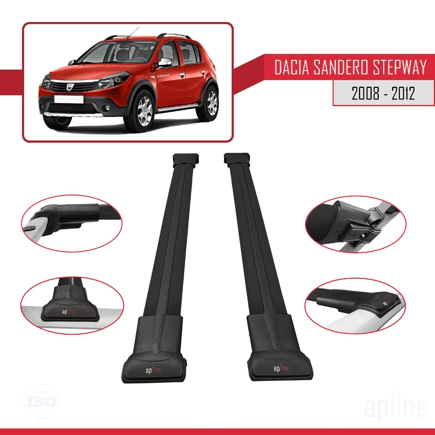 Dacia Sandero Stepway 2008-2012 fly Model Car Roof Rack Cross Bar Black Aluminium 2 Bars
