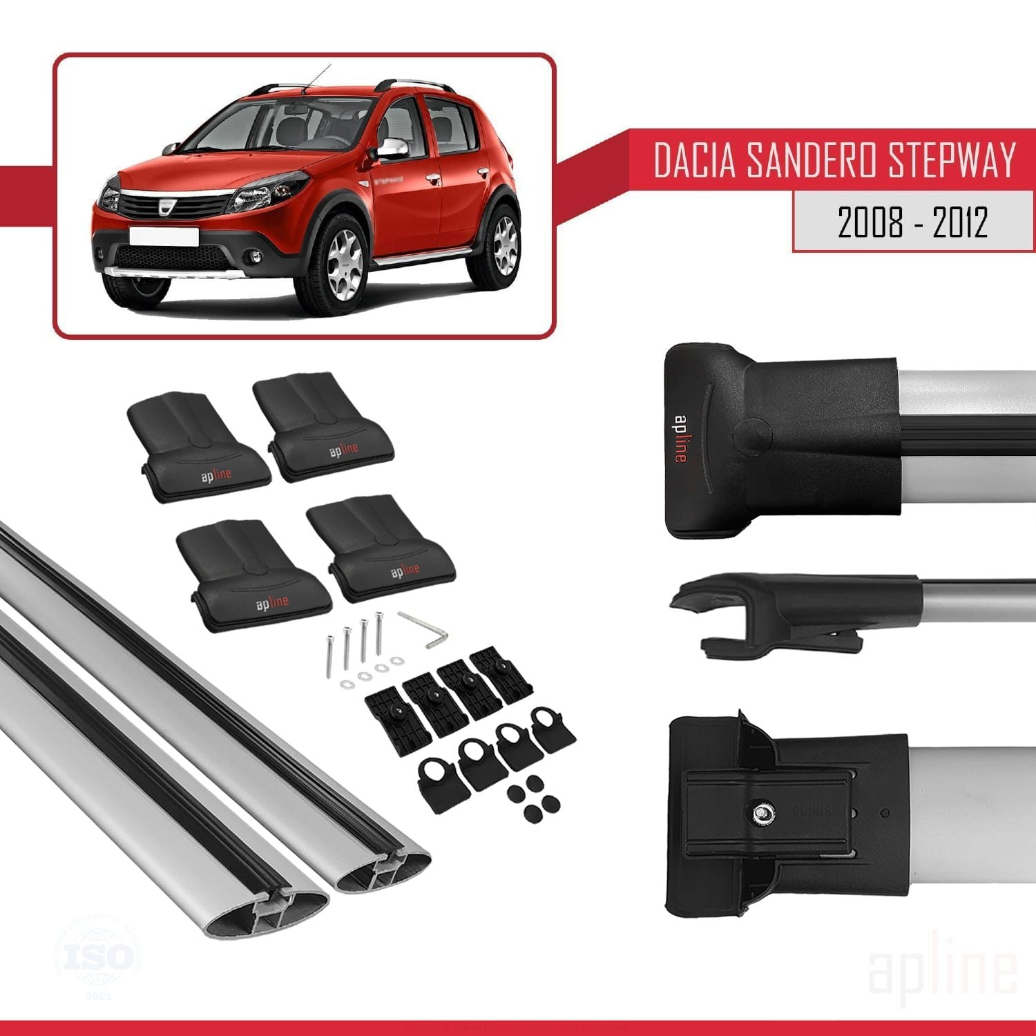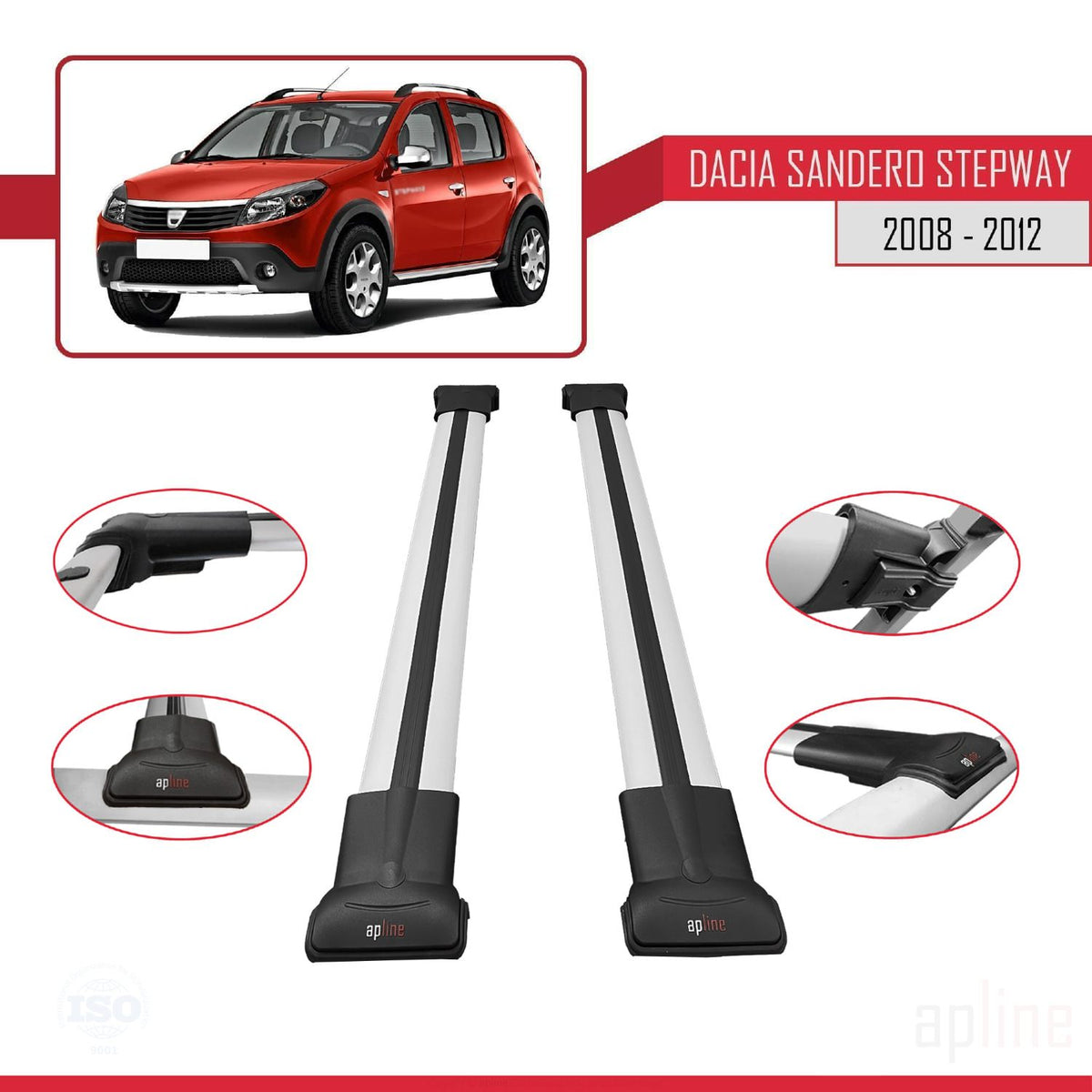 Dacia Sandero Stepway 2008-2012 fly Model Car Roof Rack Cross Bar Grey Aluminium 2 Bars