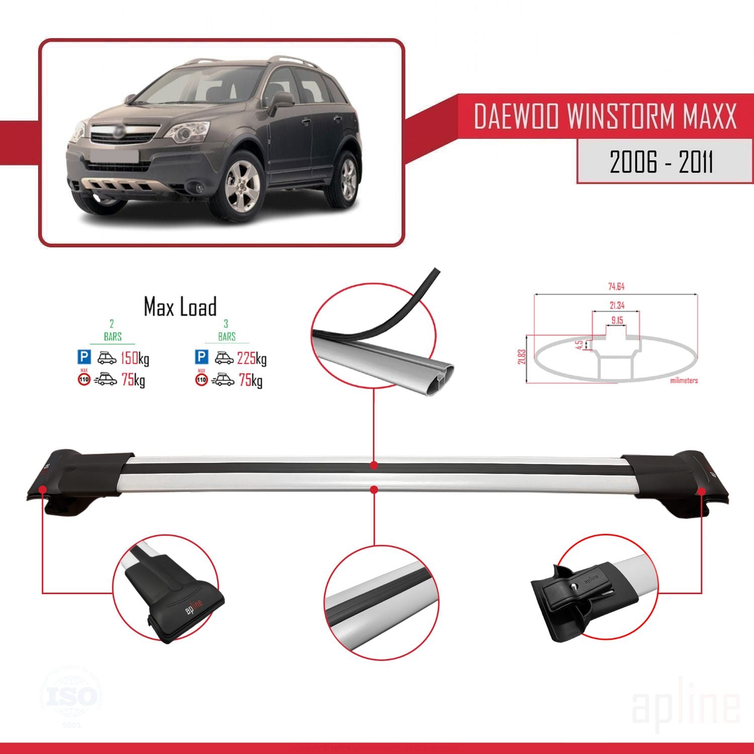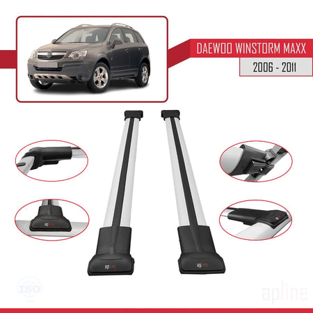 Daewoo Winstorm MaXX 2006-2011 fly Model Car Roof Rack Cross Bar Grey Aluminium 2 Bars
