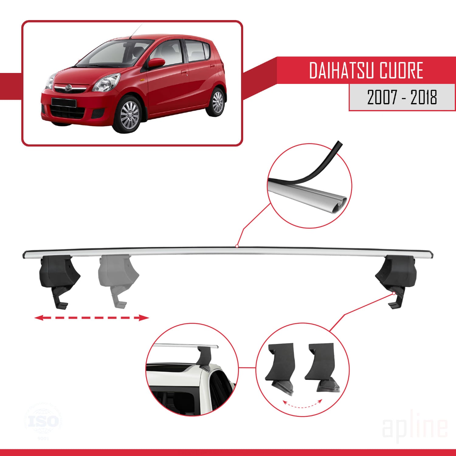 Daihatsu Cuore 2007-2018 ace4 Car Roof Rack Cross Bar Grey Aluminium 2 Bars