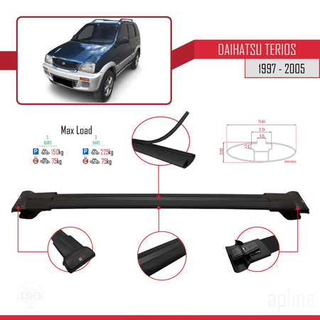 Daihatsu Terios (J100) 1997-2005 fly Model Car Roof Rack Cross Bar Black Aluminium 2 Bars