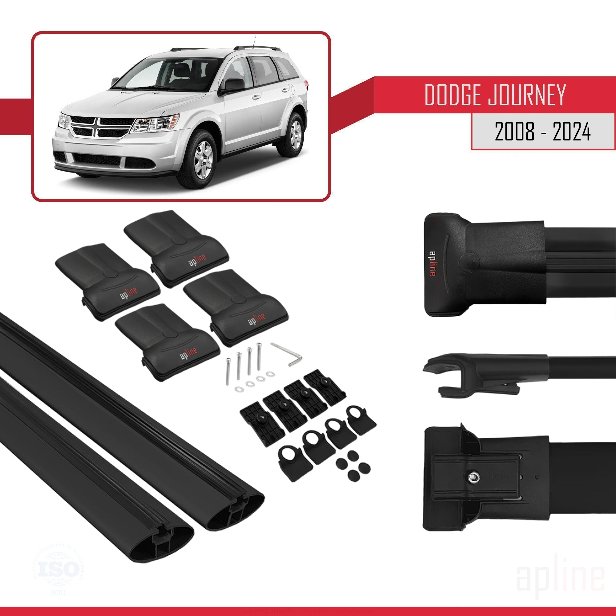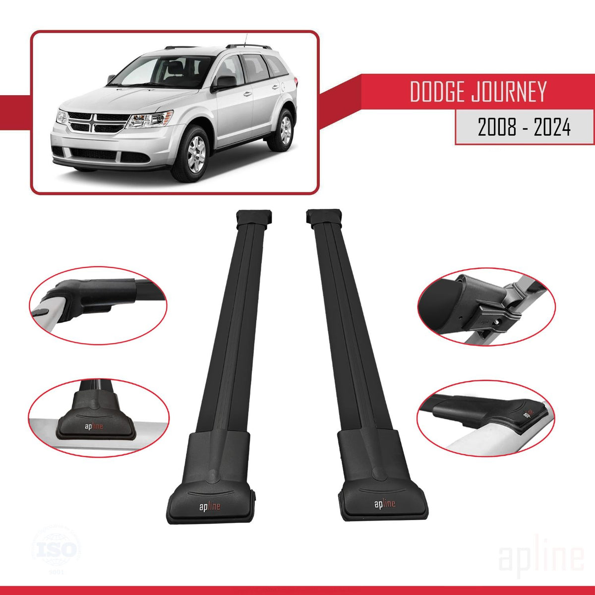 Dodge Journey 2008-2024 fly Model Car Roof Rack Cross Bar Black Aluminium 2 Bars