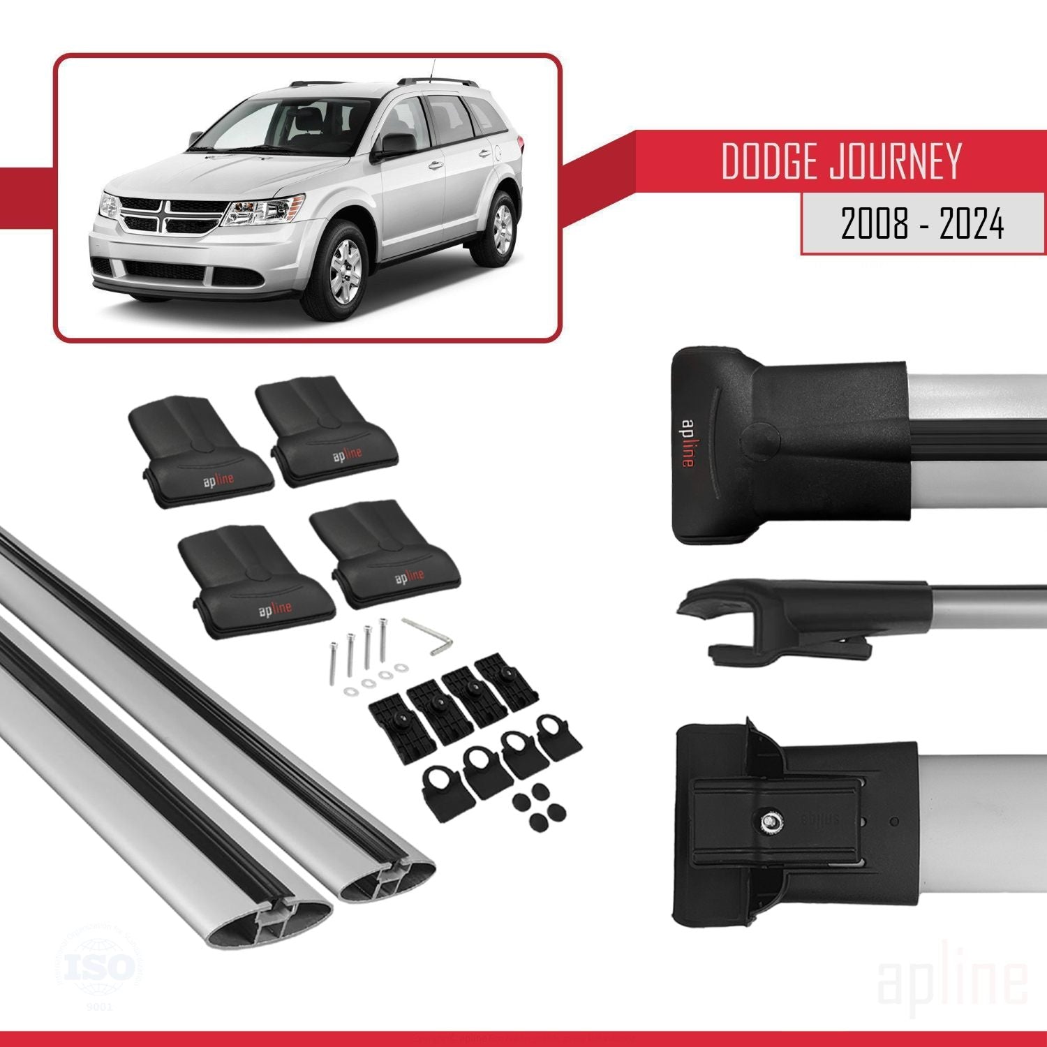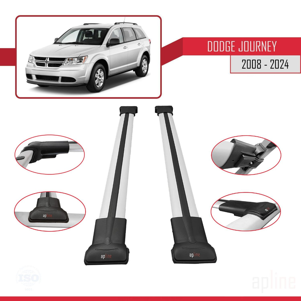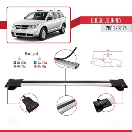 Dodge Journey 2008-2024 fly Model Car Roof Rack Cross Bar Grey Aluminium 2 Bars