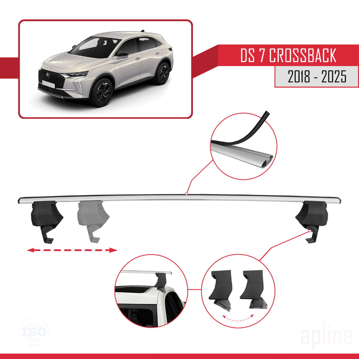 DS 7 Crossback 2018-2025 ace4 Car Roof Rack Cross Bar Grey Aluminium 2 Bars