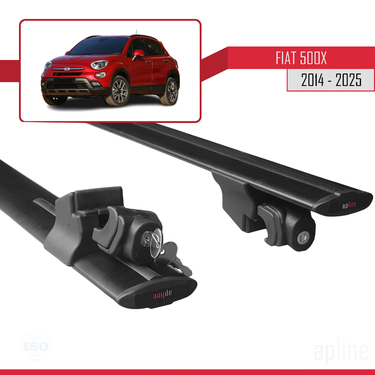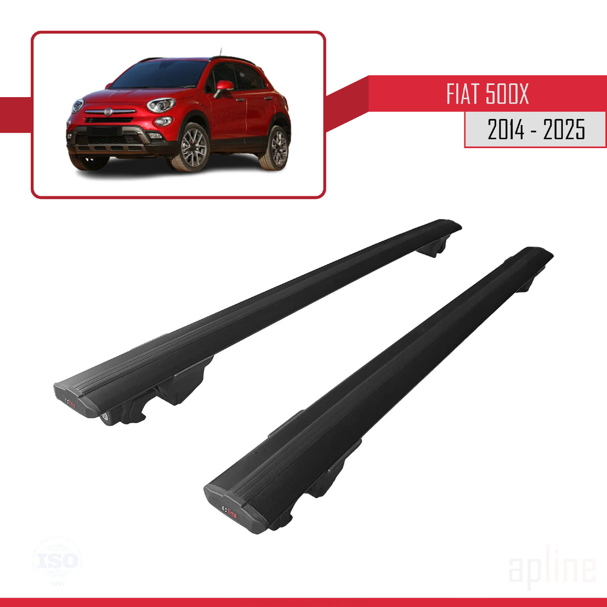Fiat 500X 2014-2025 hook Model Car Roof Rack Cross Bar Black Aluminium 2 Bars