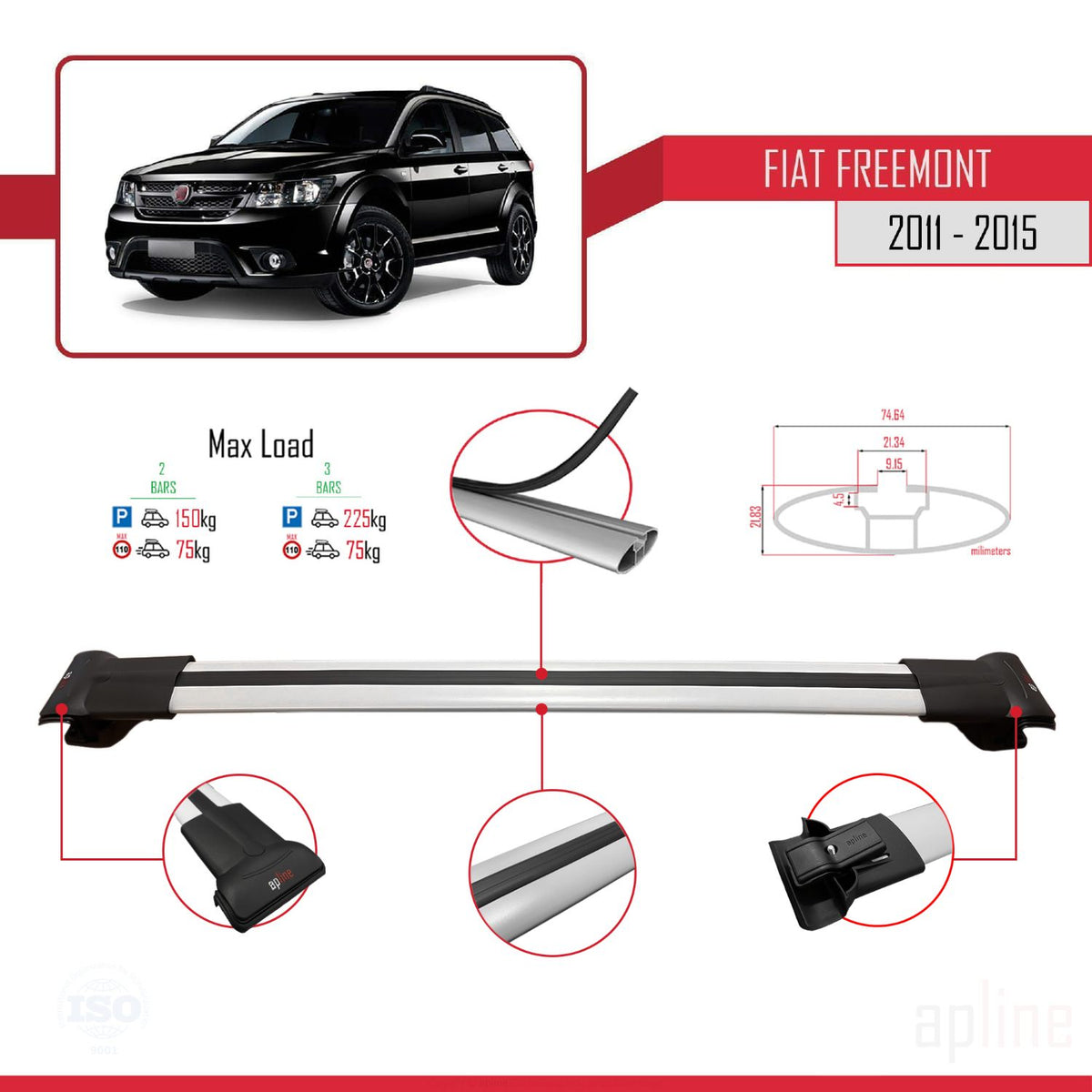 Fiat Freemont 2011-2015 fly Model Car Roof Rack Cross Bar Grey Aluminium 2 Bars