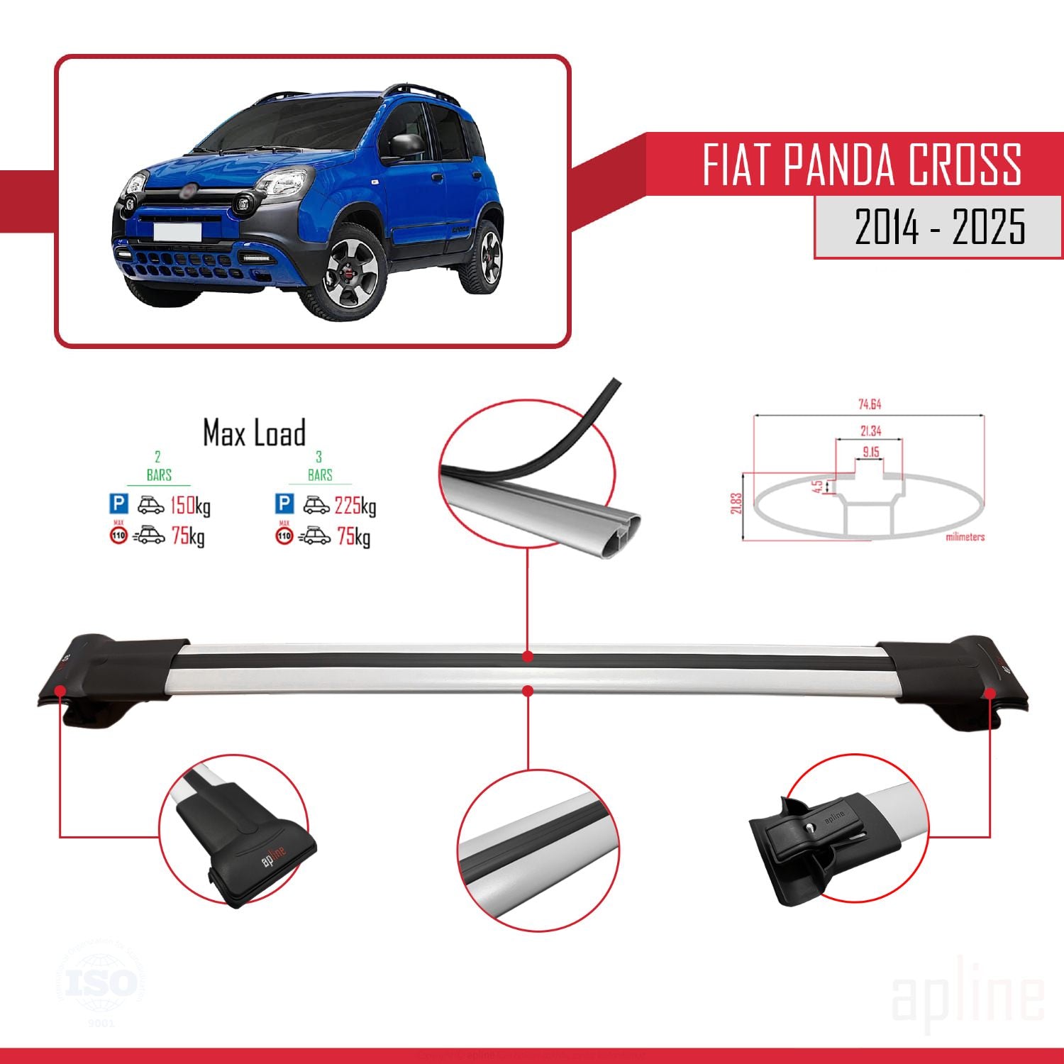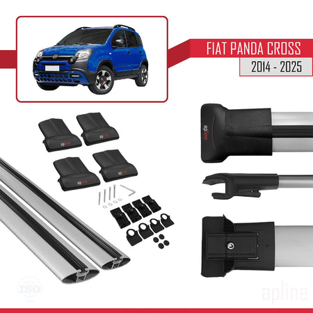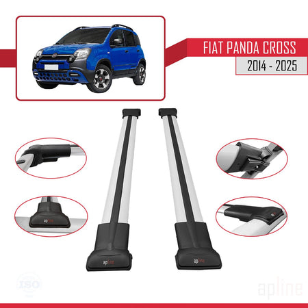 Fiat Panda Cross 2014-2025 fly Model Car Roof Rack Cross Bar Grey Aluminium 2 Bars