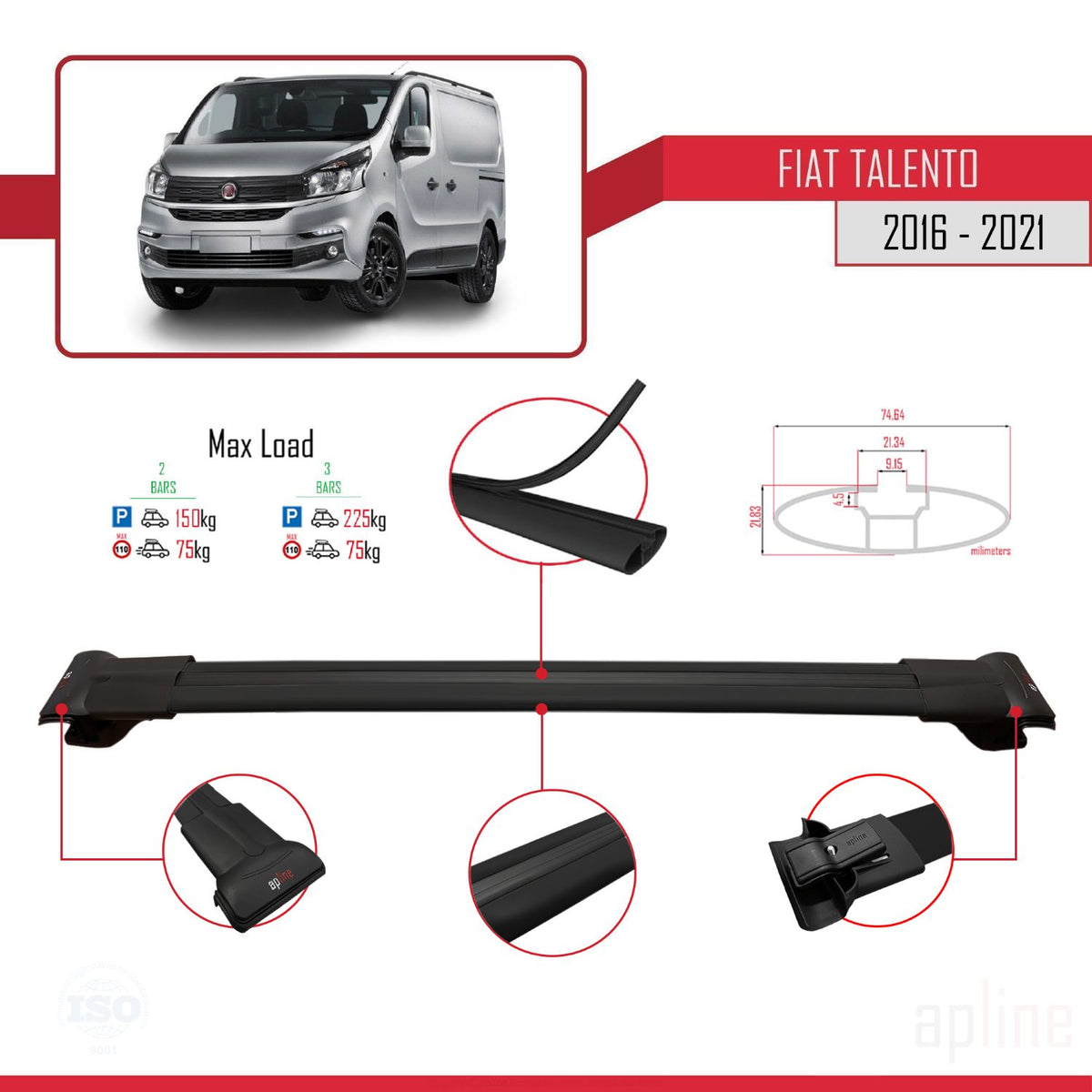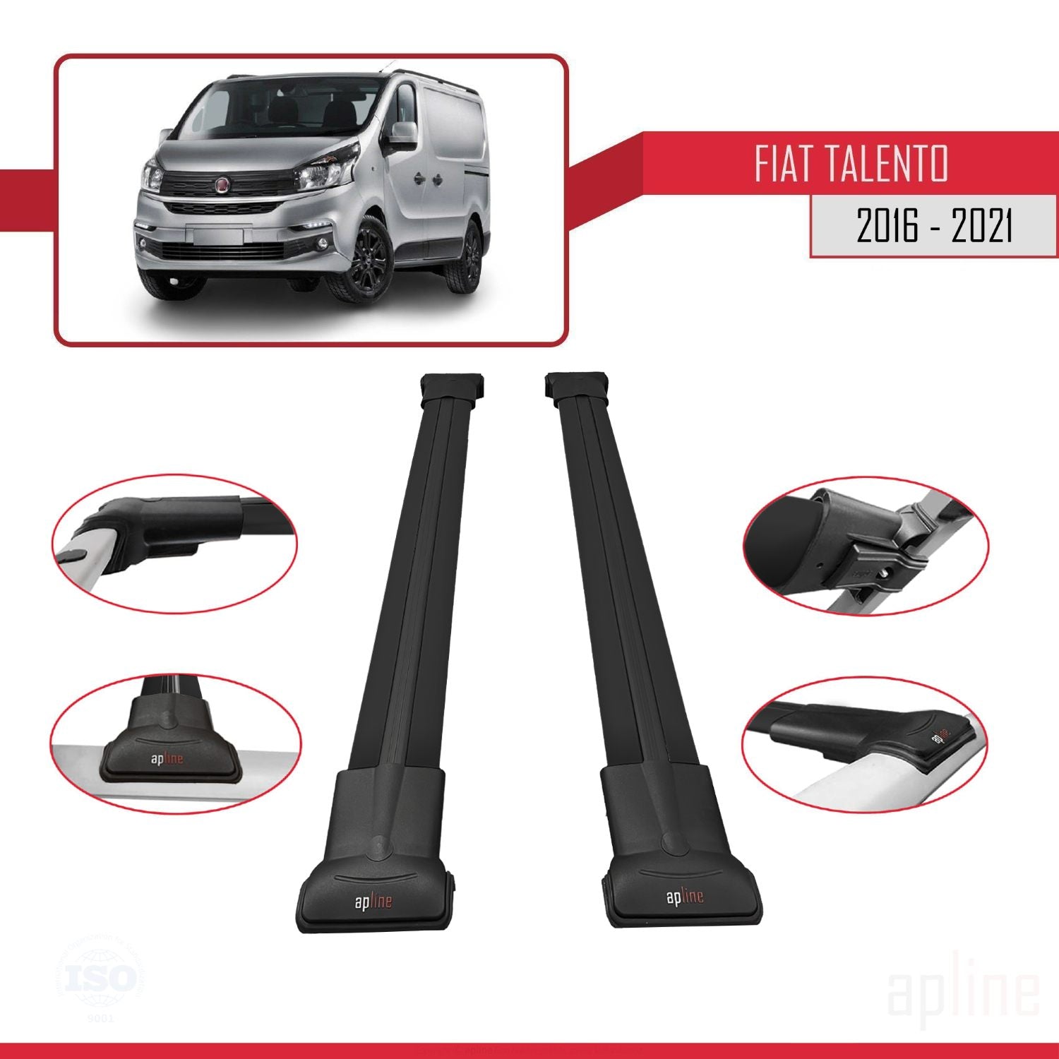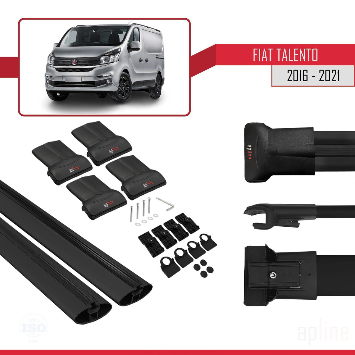 Fiat Talento 2016-2021 fly Model Car Roof Rack Cross Bar Black Aluminium 2 Bars