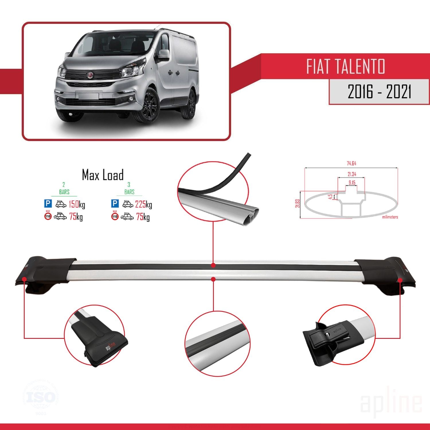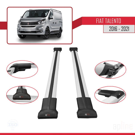 Fiat Talento 2016-2021 fly Model Car Roof Rack Cross Bar Grey Aluminium 2 Bars