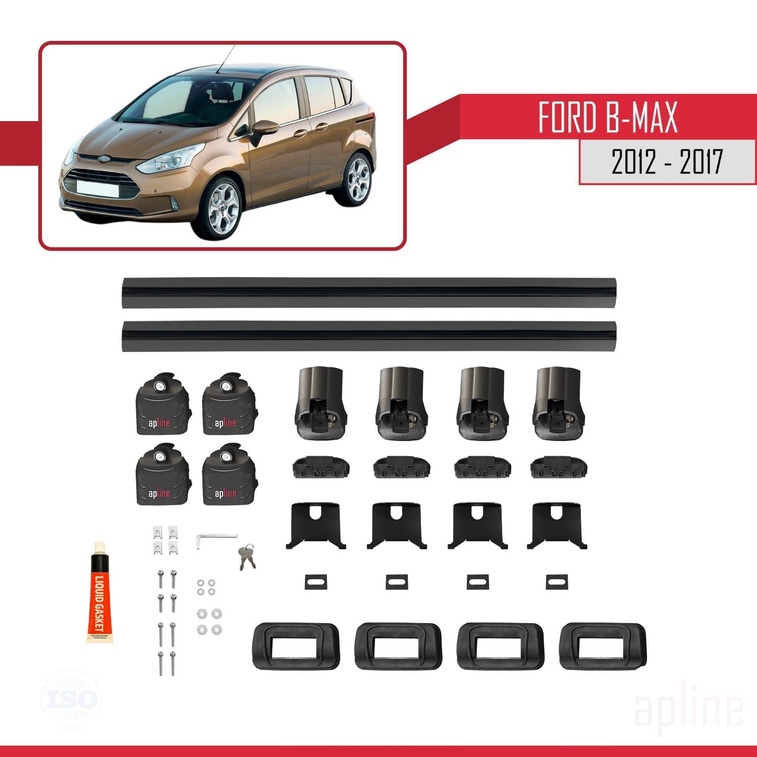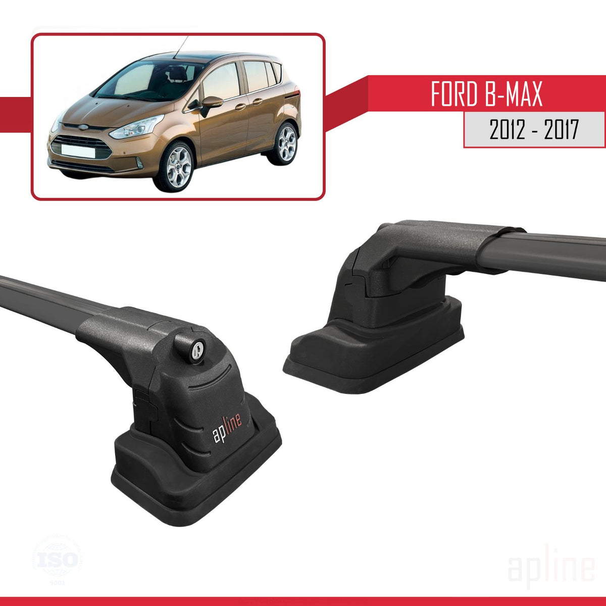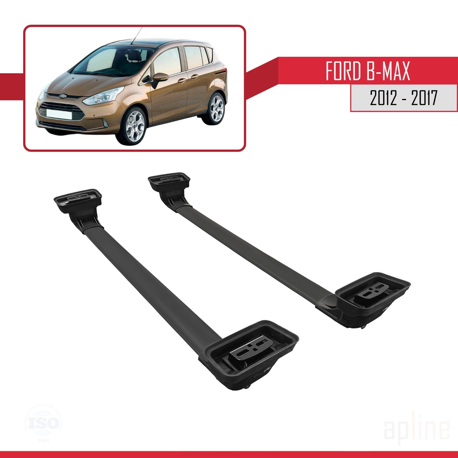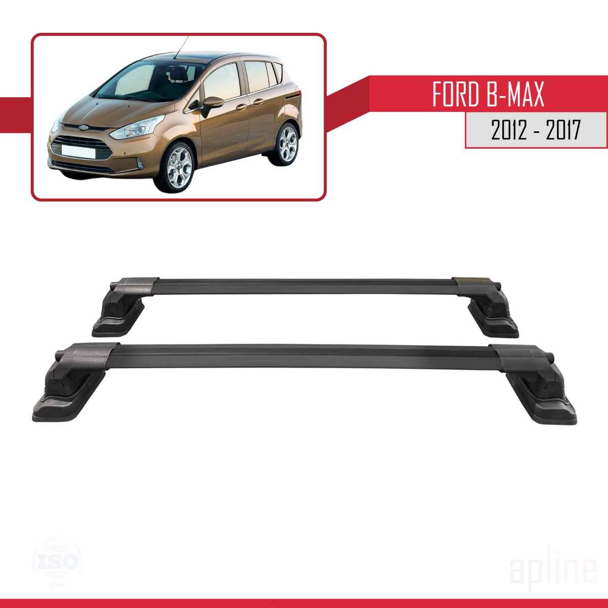 Ford B-Max (B232) 2012-2017 ace3 Car Roof Rack Cross Bar Black Aluminium 2 Bars