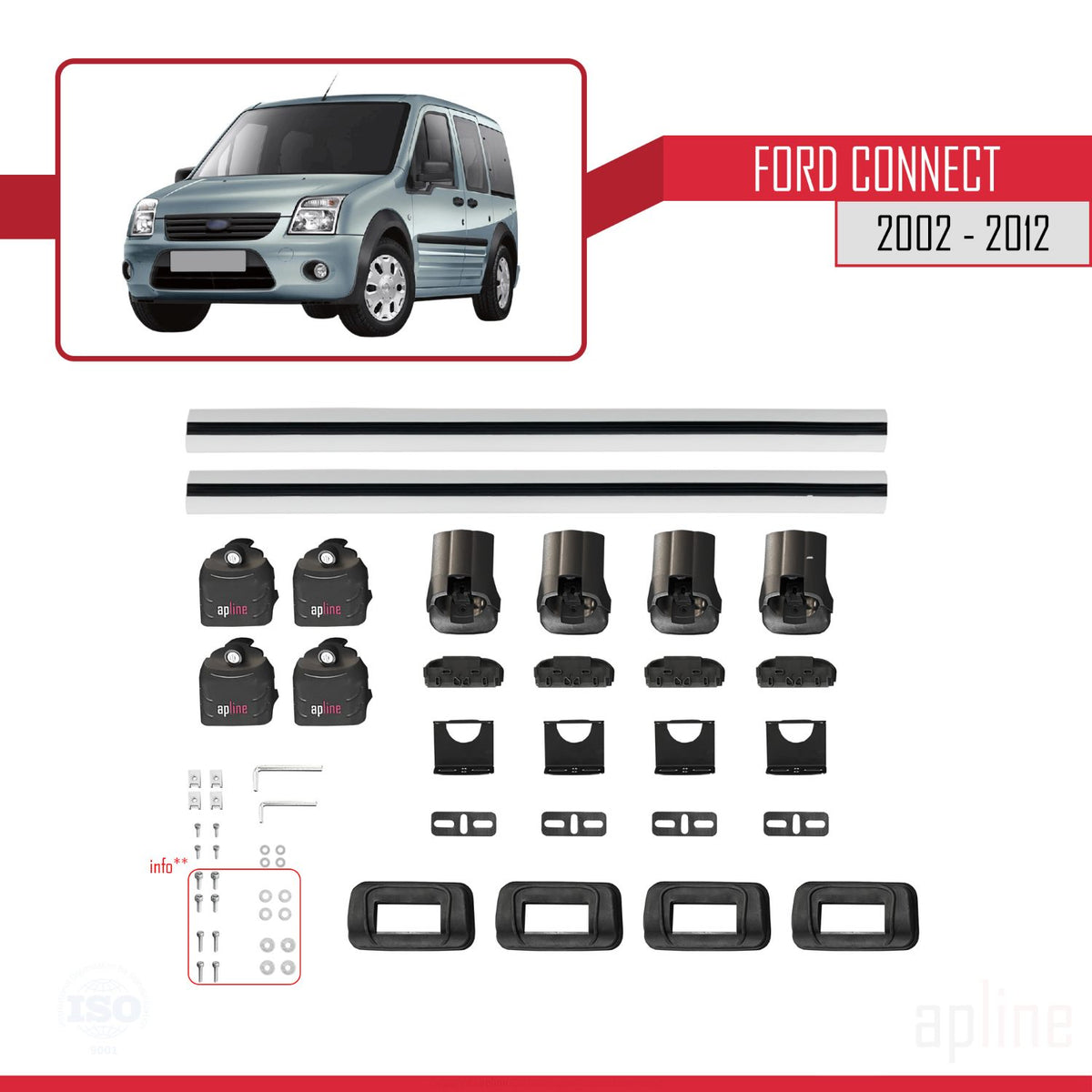 Ford Connect 2002-2012 ace3 Car Roof Rack Cross Bar Grey Aluminium 2 Bars