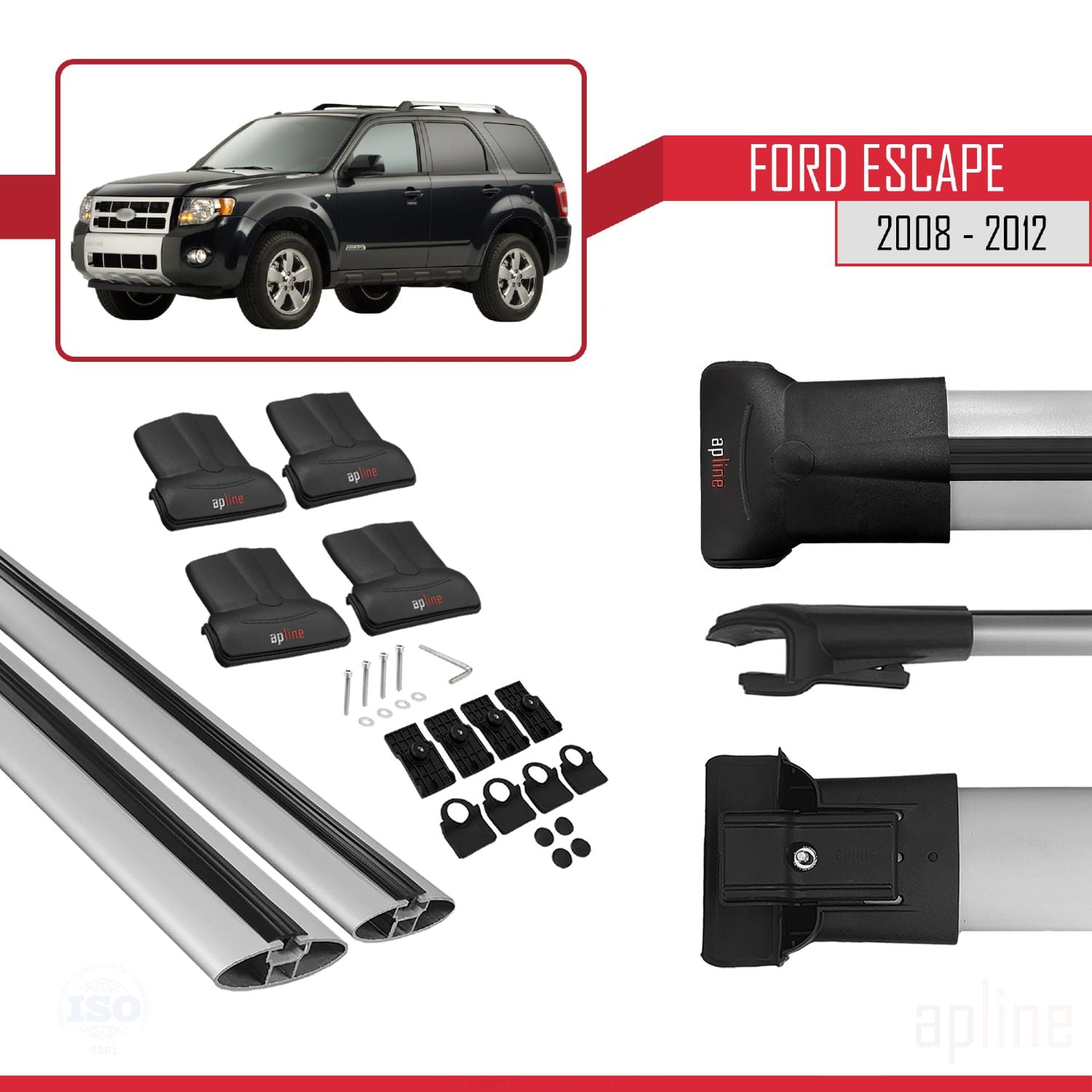 Ford Escape 2008-2012 fly Model Car Roof Rack Cross Bar Grey Aluminium 2 Bars