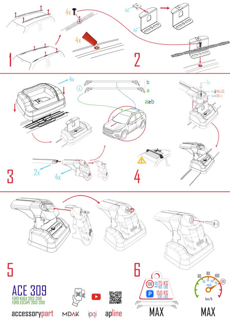 Ford Kuga (C520) 2013-2019 ace3 Car Roof Rack Cross Bar Black Aluminium 2 Bars