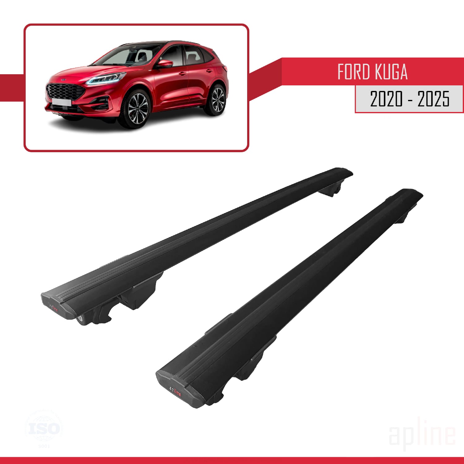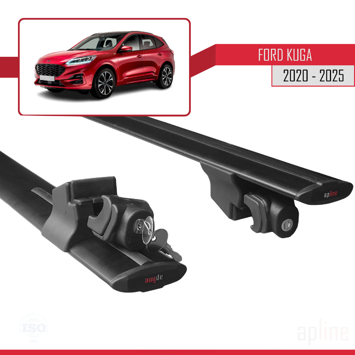 Ford Kuga 3 (CX482) 2020-2025 hook Model Car Roof Rack Cross Bar Black Aluminium 2 Bars