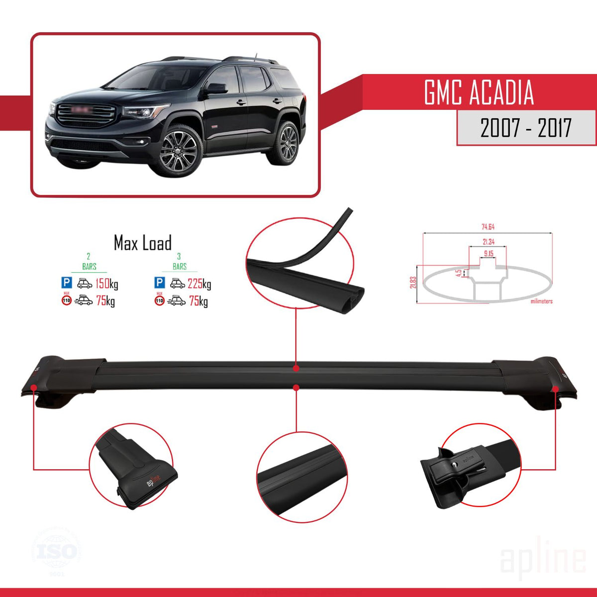 GMC Acadia 2007-2017 fly Model Car Roof Rack Cross Bar Black Aluminium 3 Bars