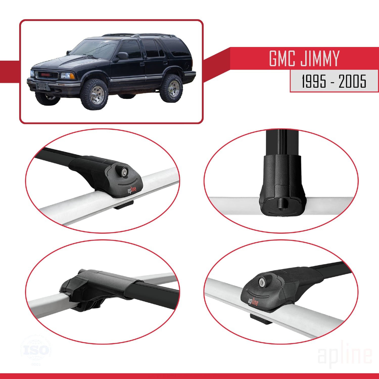 GMC Jimmy 1995-2005 ACE-1 Car Roof Rack Cross Bar Black Aluminium 4 Bars