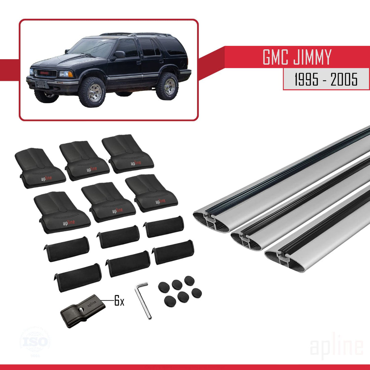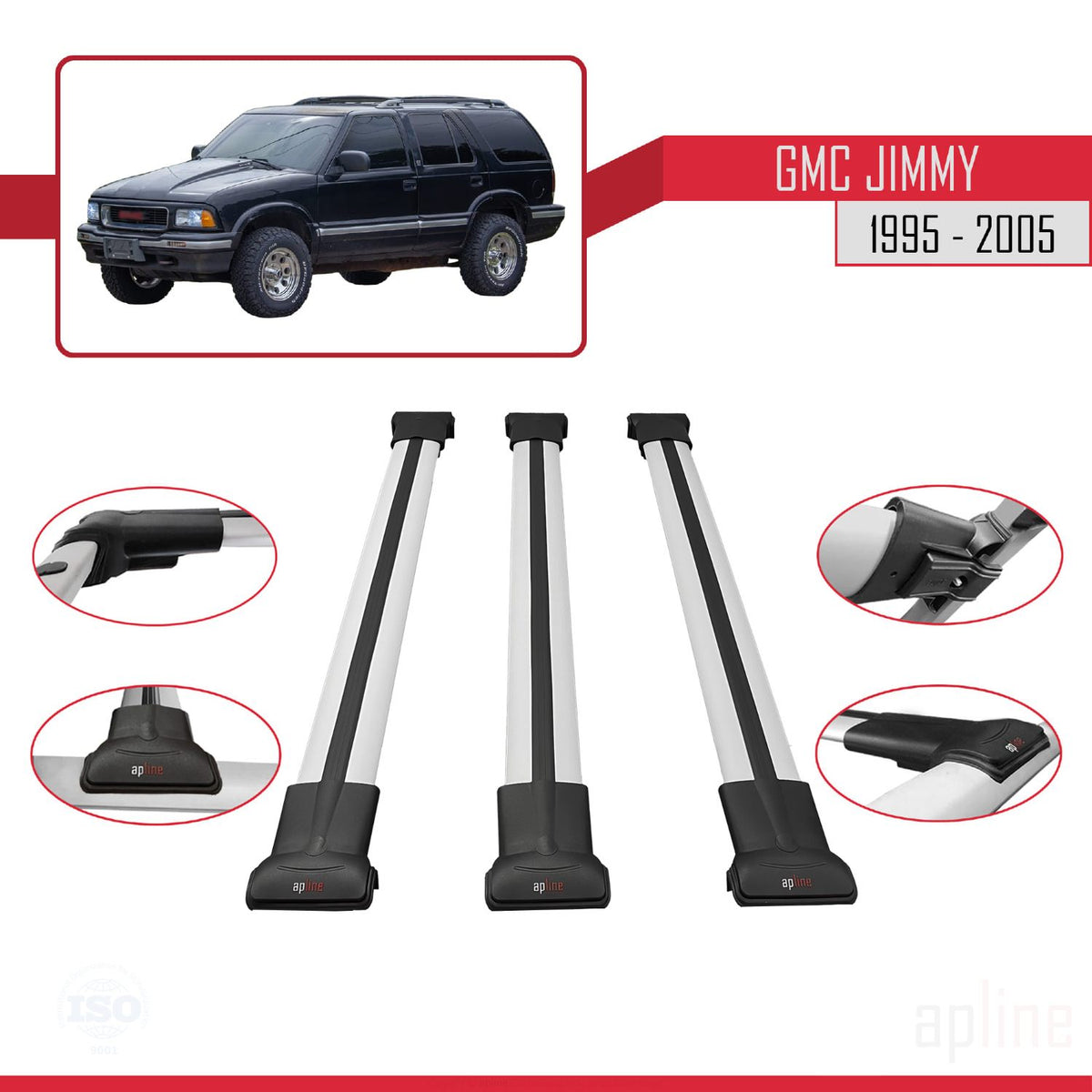 GMC Jimmy 1995-2005 fly Model Car Roof Rack Cross Bar Grey Aluminium 3 Bars