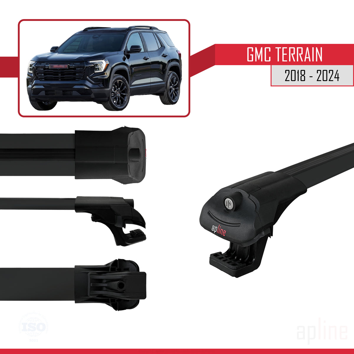GMC Terrain 2018-2024 ACE-1 Car Roof Rack Cross Bar Black Aluminium 2 Bars