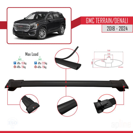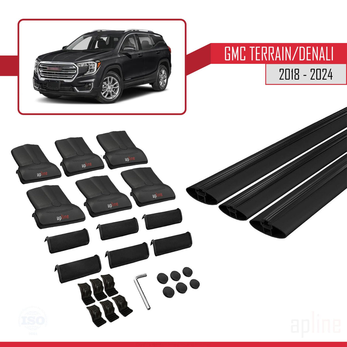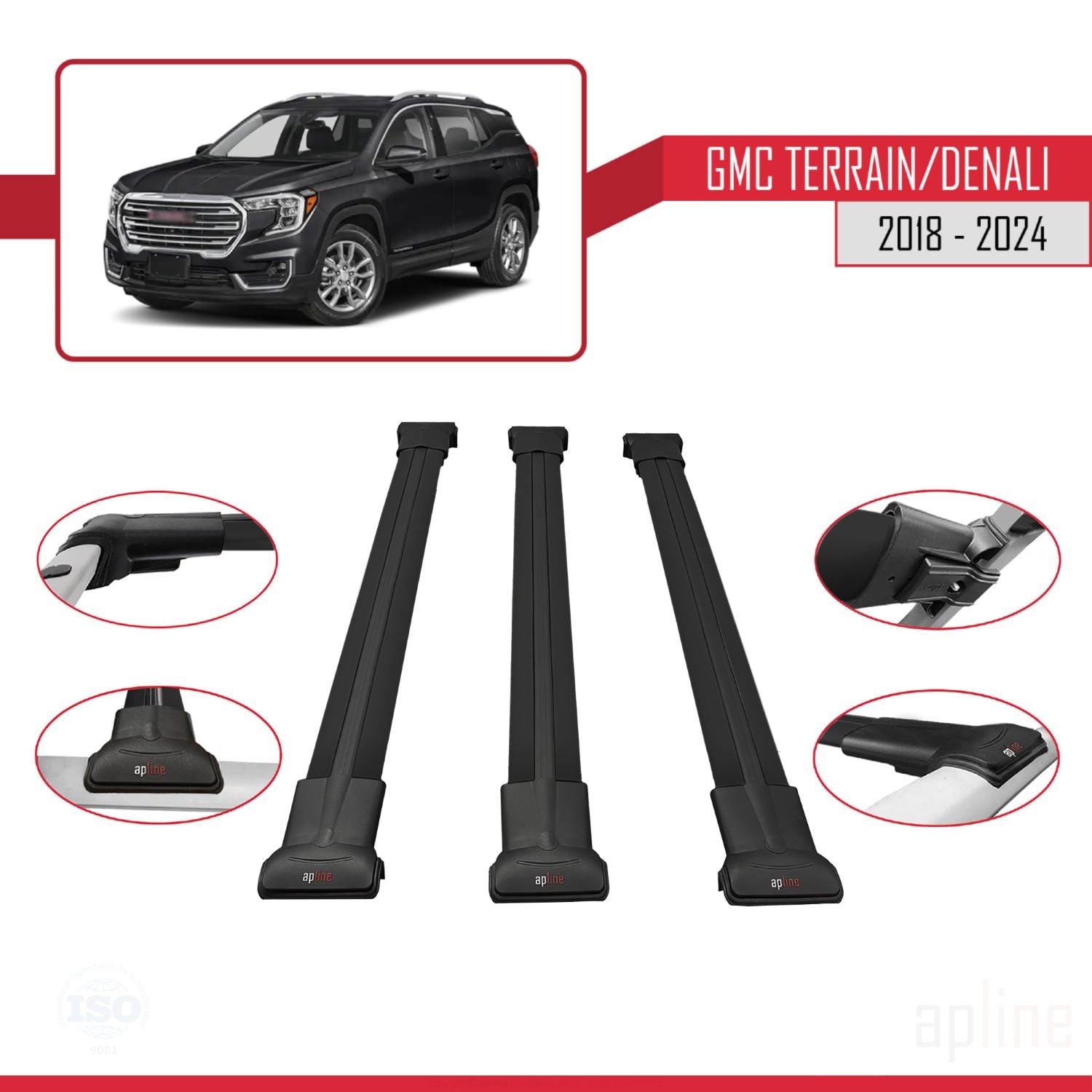 GMC Terrain / Denali 2018-2024 fly Model Car Roof Rack Cross Bar Black Aluminium 3 Bars