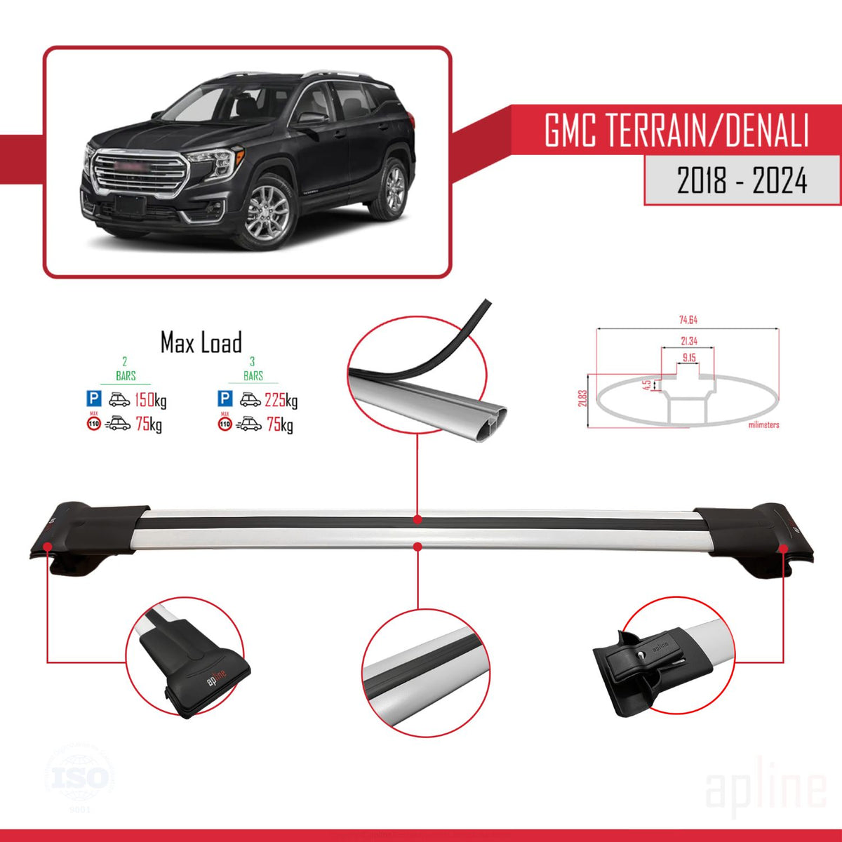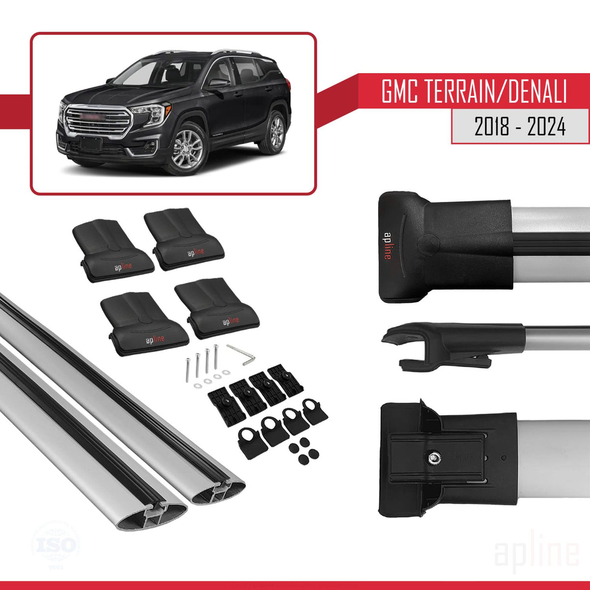 GMC Terrain / Denali 2018-2024 fly Model Car Roof Rack Cross Bar Grey Aluminium 2 Bars