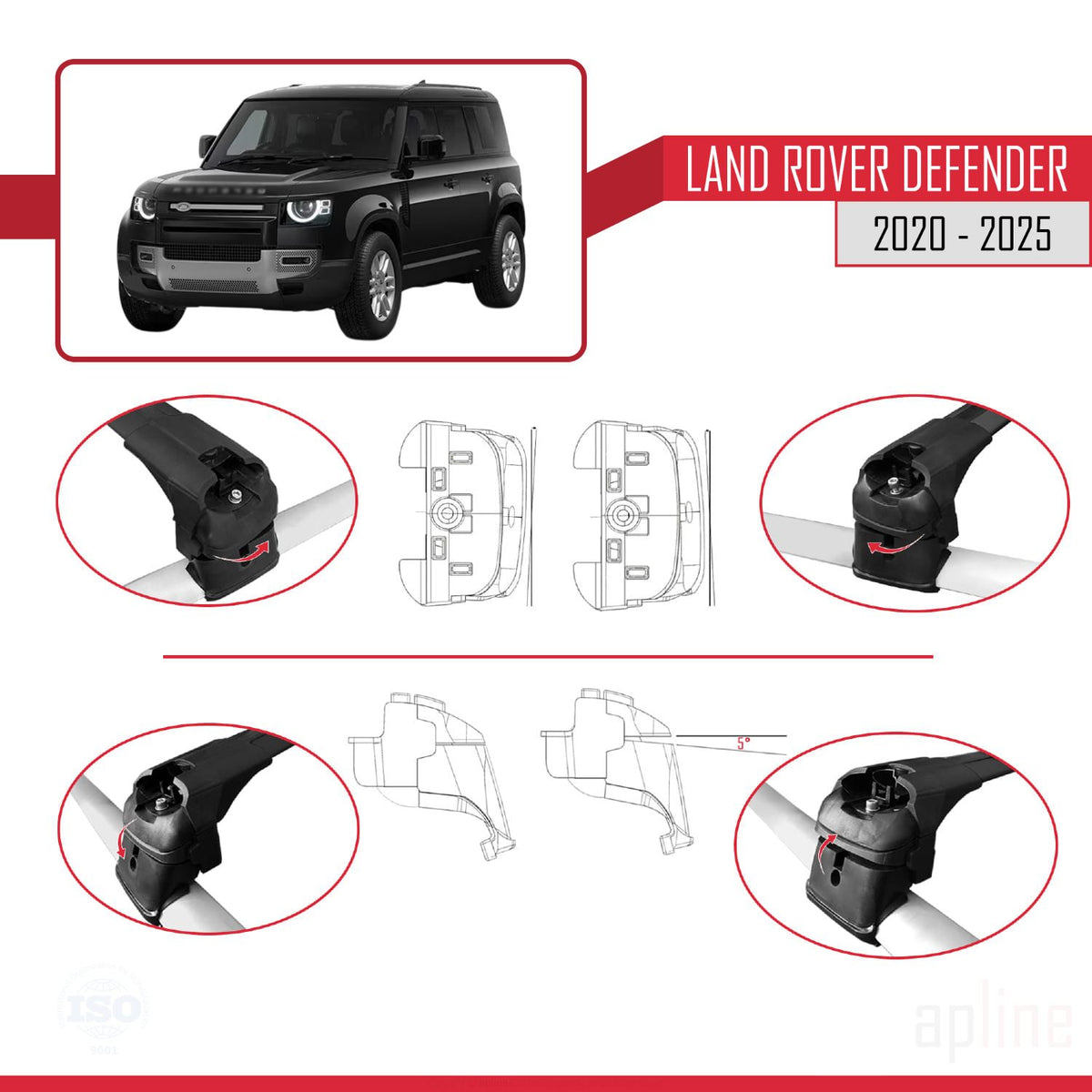 Land Rover Defender 2020-2025 ace2 Car Roof Rack Cross Bar Black Aluminium 2 Bars
