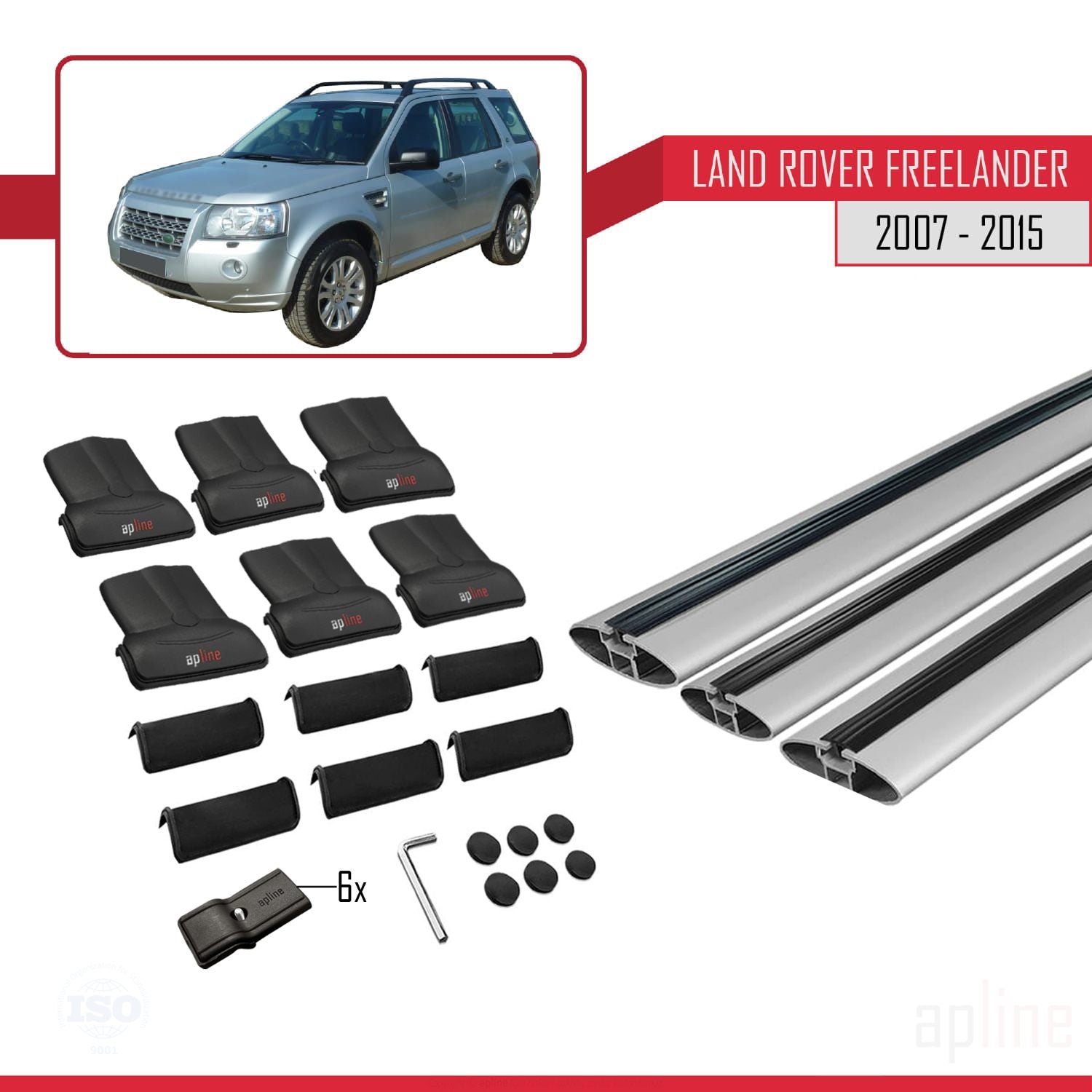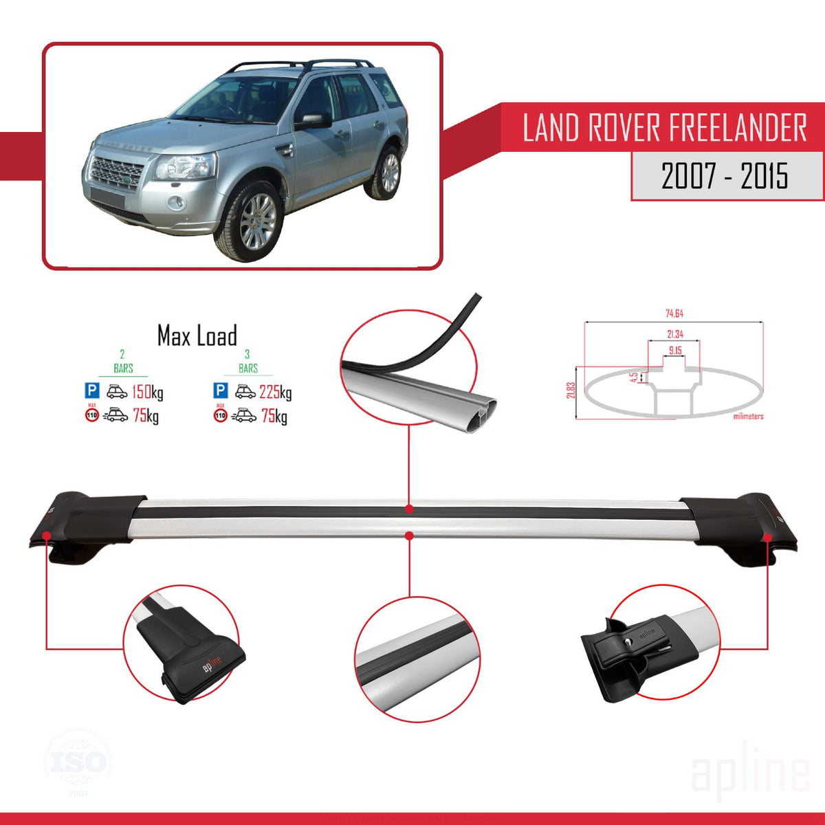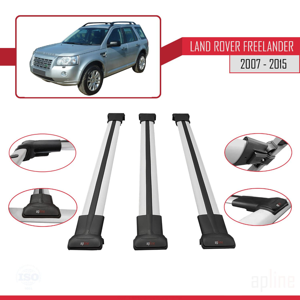 Land Rover Freelander 2 (L359) 2007-2015 fly Model Car Roof Rack Cross Bar Grey Aluminium 3 Bars
