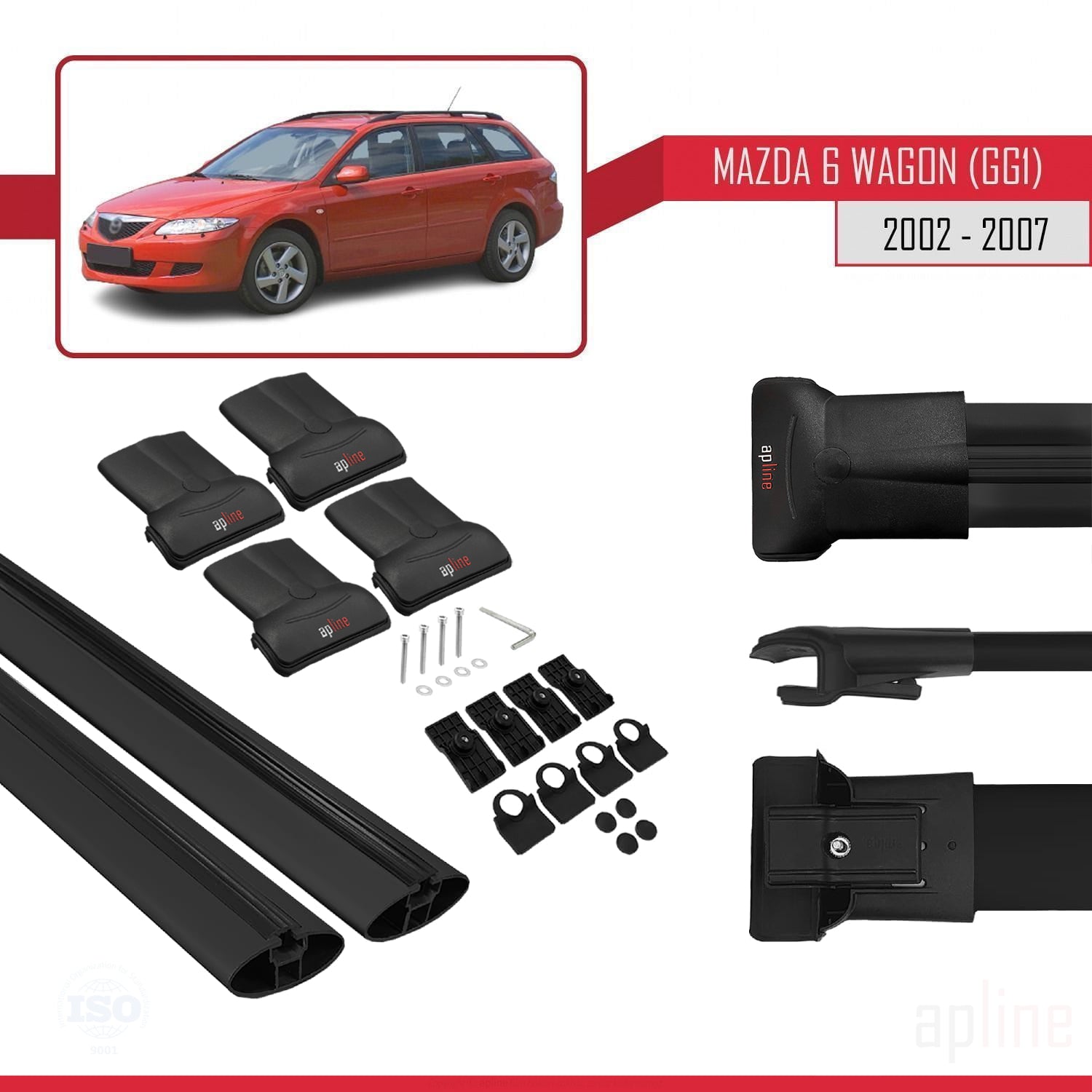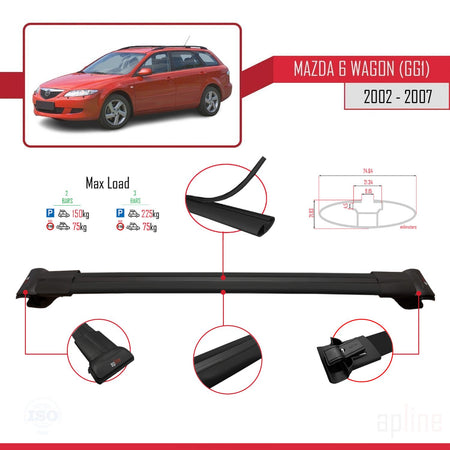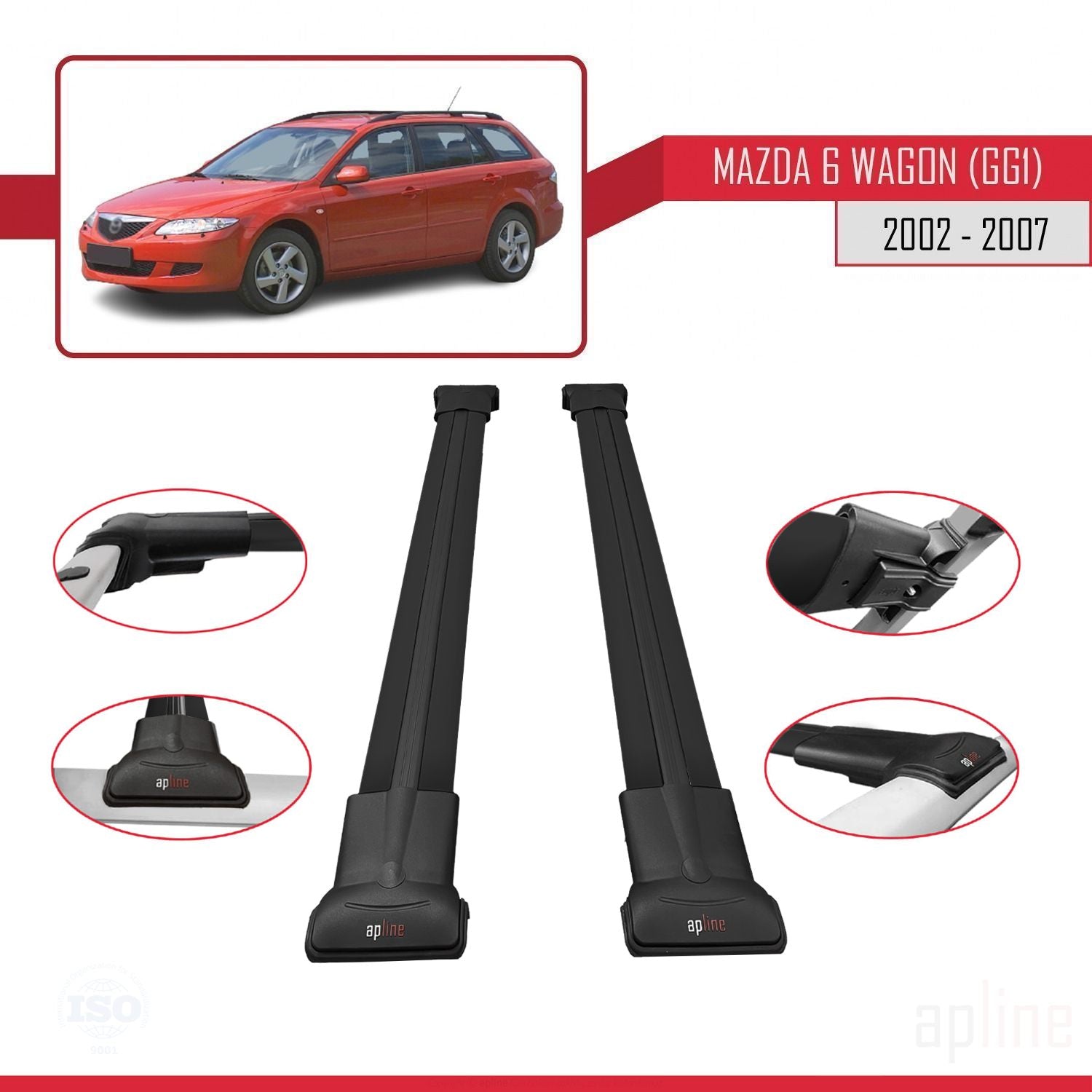 Mazda 6 I (GG1) 2002-2007 fly Model Car Roof Rack Cross Bar Black Aluminium 2 Bars