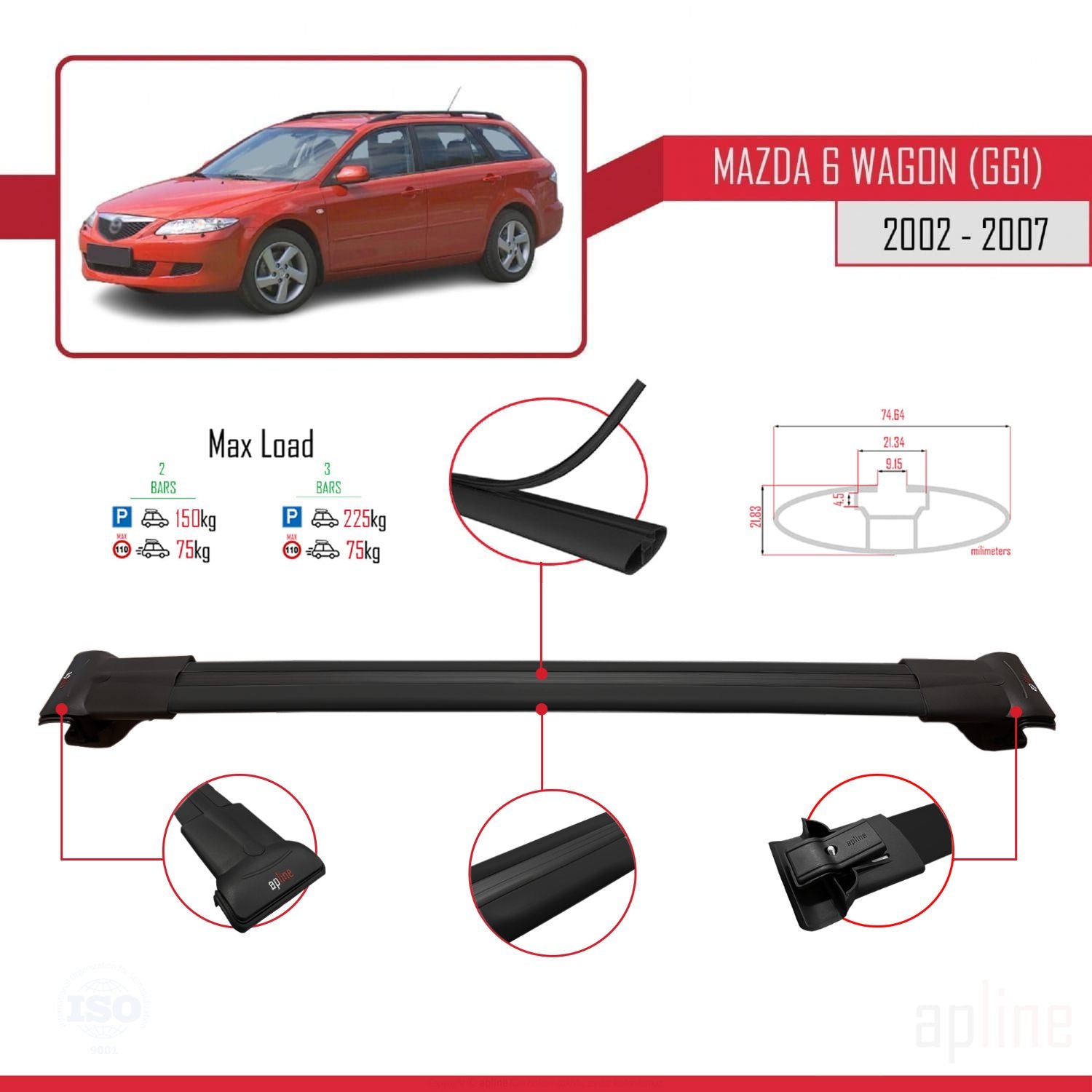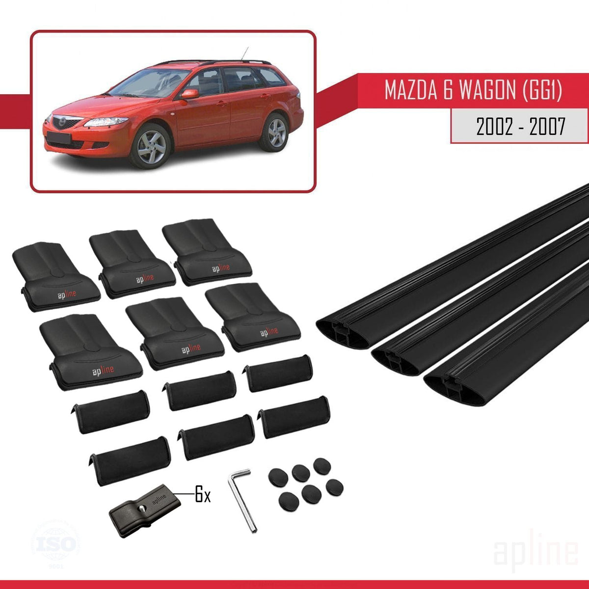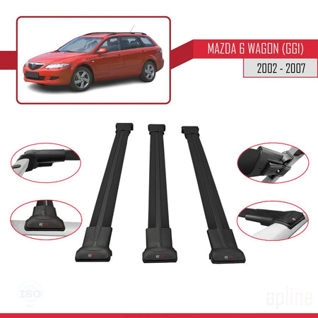 Mazda 6 I (GG1) 2002-2007 fly Model Car Roof Rack Cross Bar Black Aluminium 3 Bars
