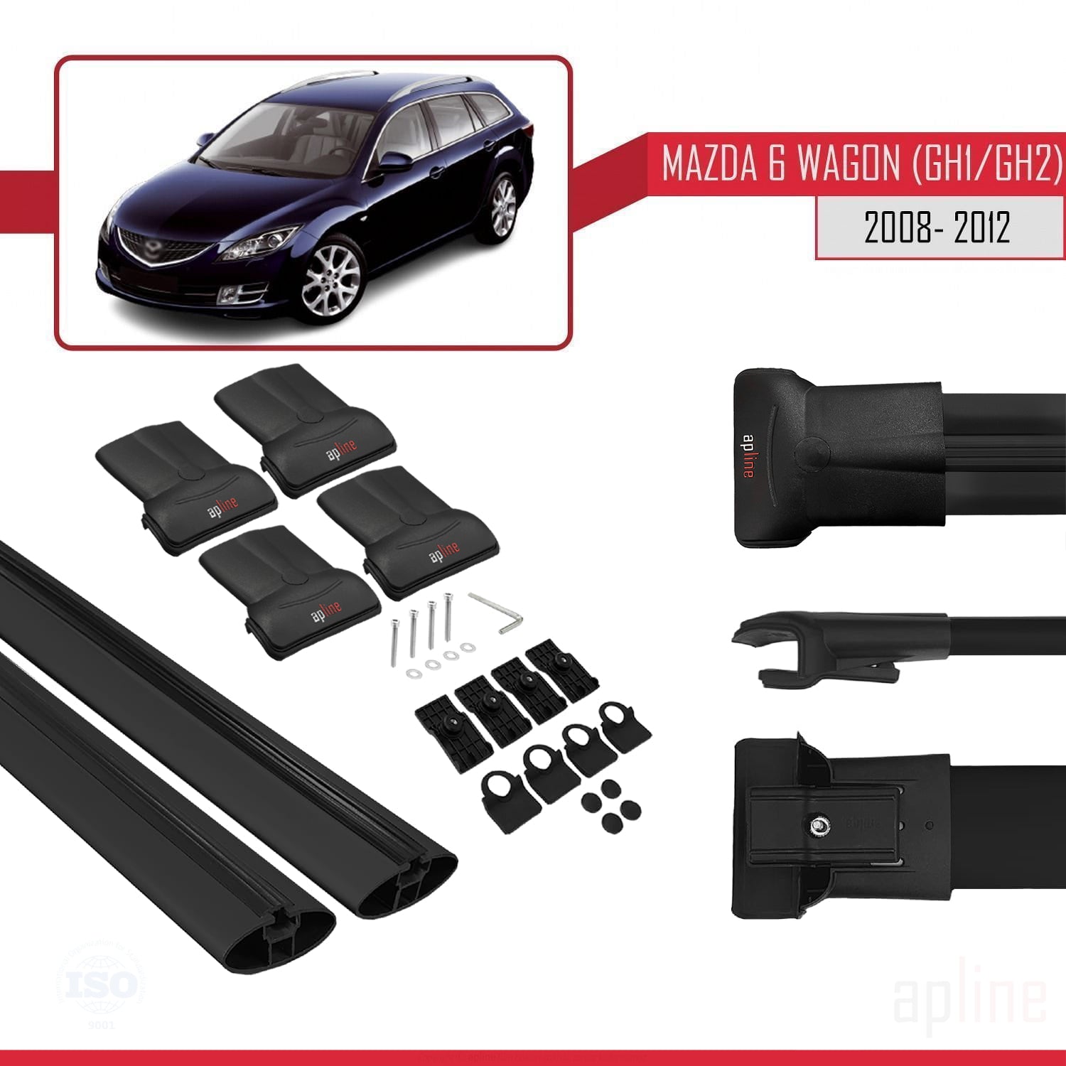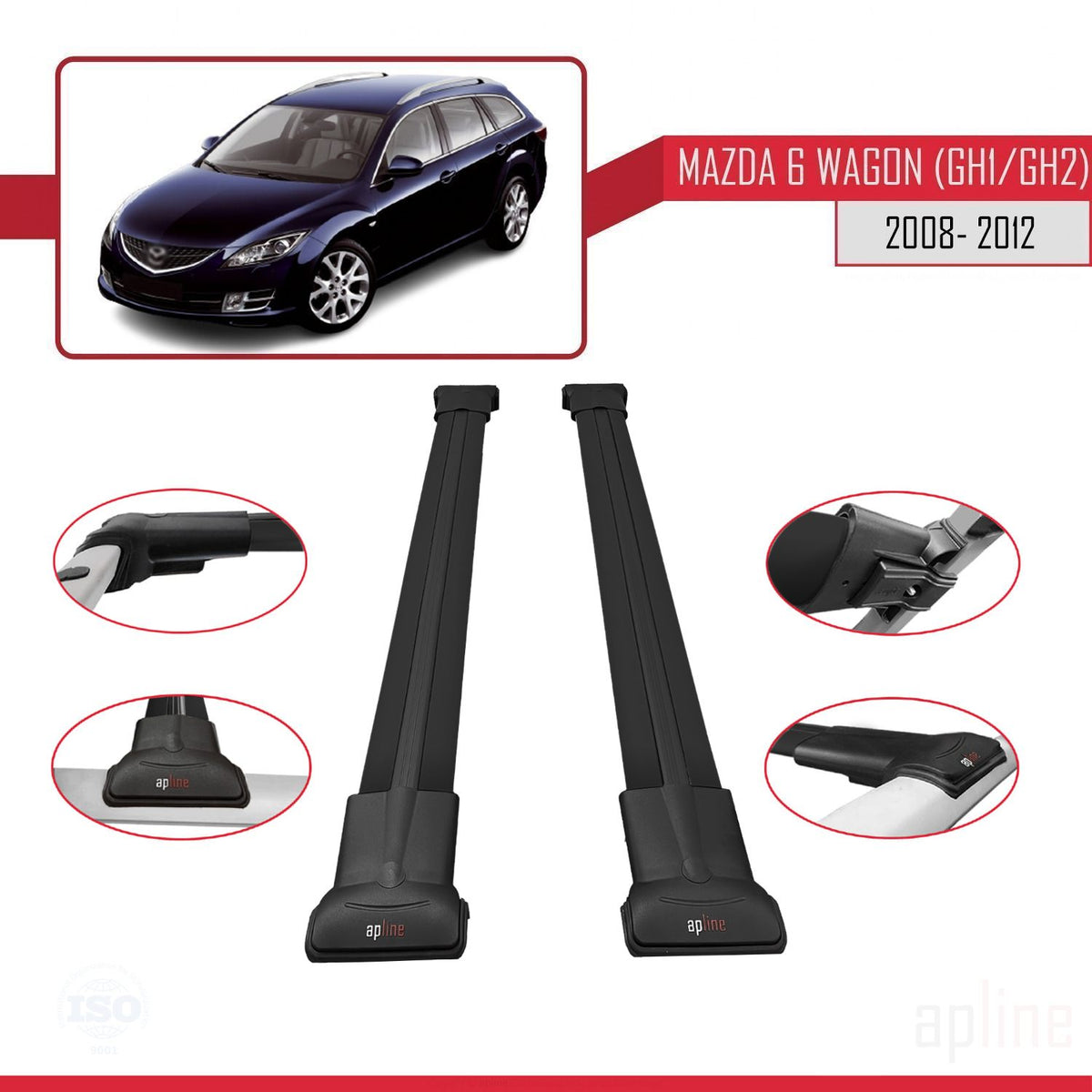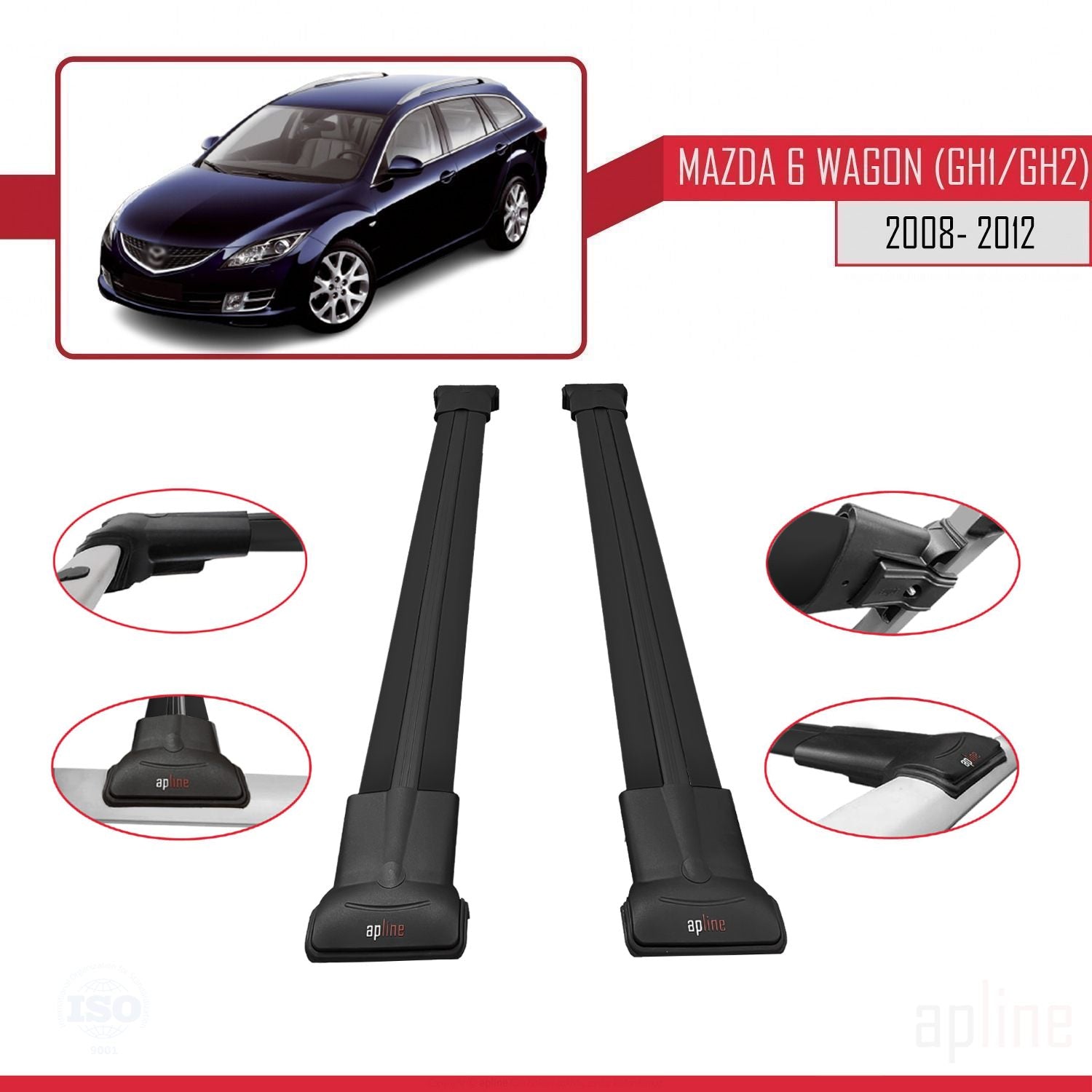 Mazda 6 II (GZ) Wagon 2008-2012 fly Model Car Roof Rack Cross Bar Black Aluminium 2 Bars