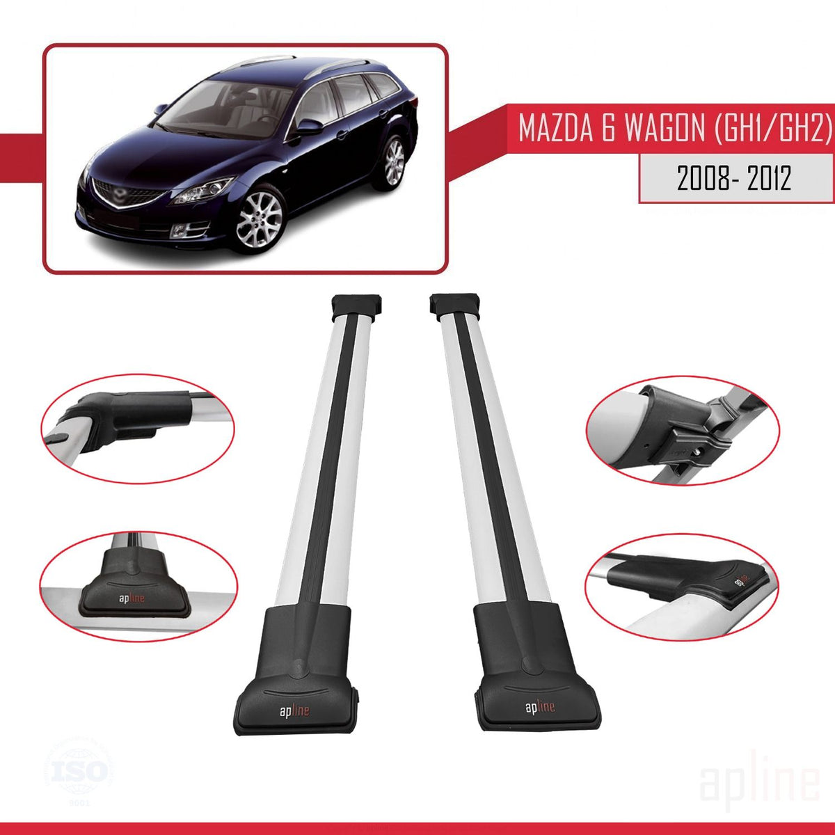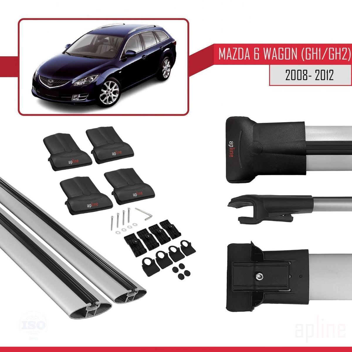 Mazda 6 II (GZ) Wagon 2008-2012 fly Model Car Roof Rack Cross Bar Grey Aluminium 2 Bars