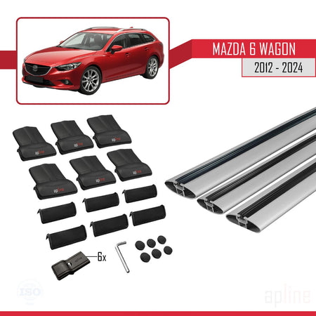 Mazda 6 Wagon 2012-2024 fly Model Car Roof Rack Cross Bar Grey Aluminium 3 Bars