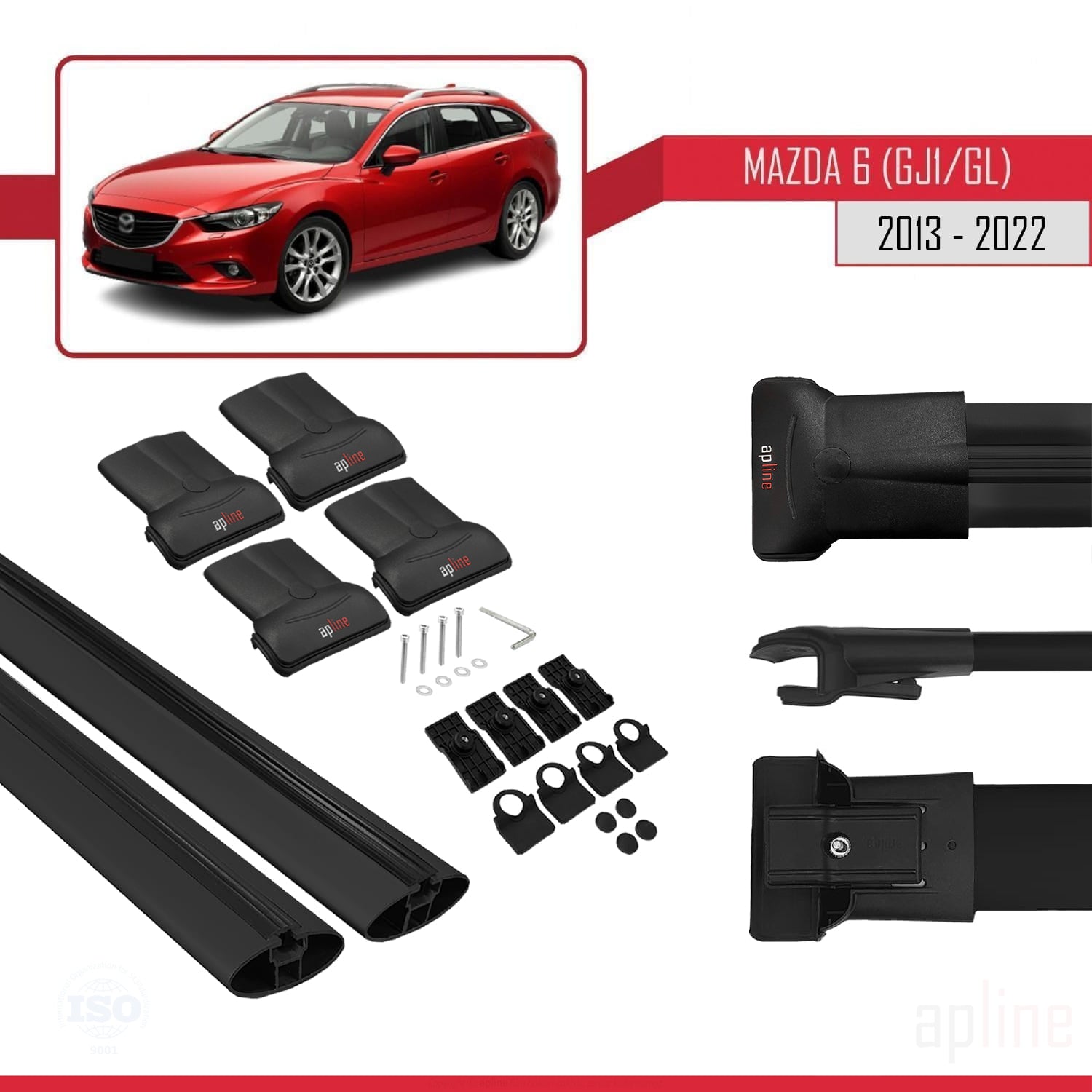 Mazda 6 III (GJ1/GL) 2013-2022 fly Model Car Roof Rack Cross Bar Black Aluminium 2 Bars