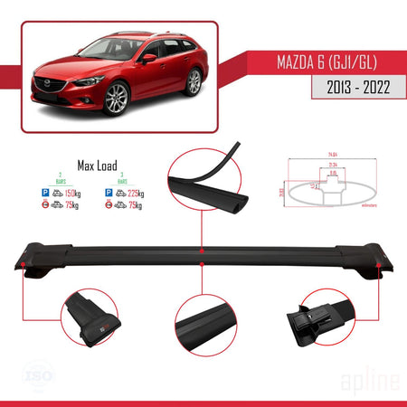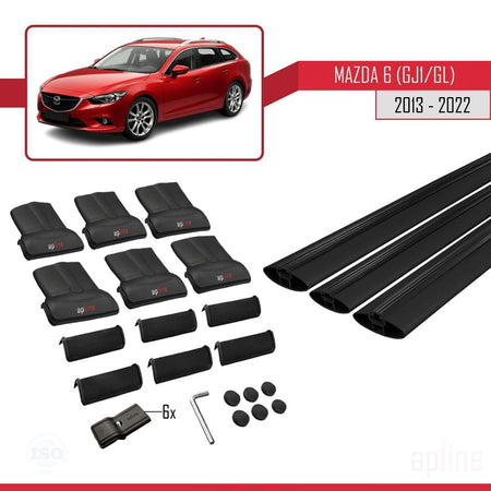 Mazda 6 III (GJ1/GL) 2013-2022 fly Model Car Roof Rack Cross Bar Black Aluminium 3 Bars