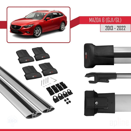 Mazda 6 III (GJ1/GL) 2013-2022 fly Model Car Roof Rack Cross Bar Grey Aluminium 2 Bars