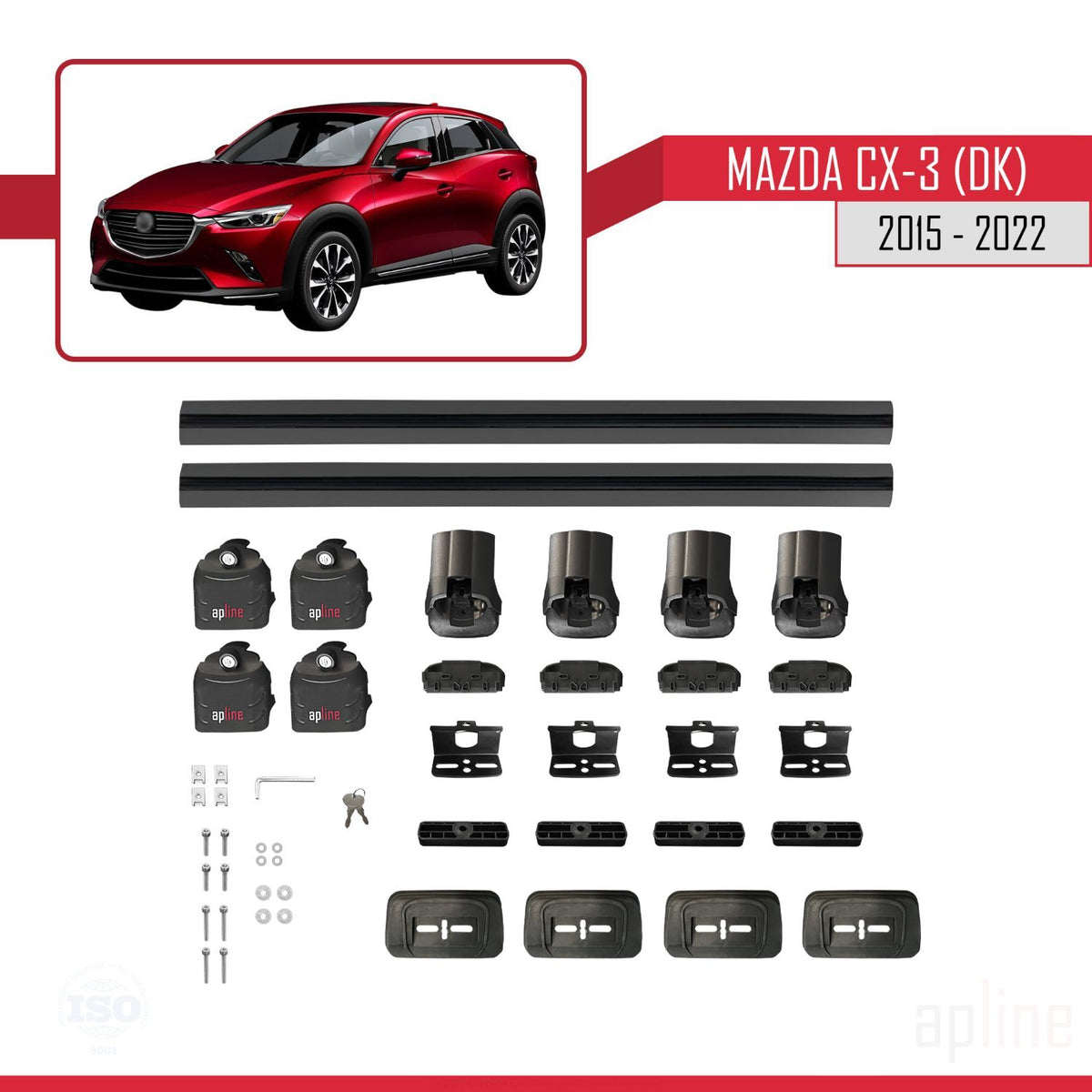 Mazda CX-3 (DK) 2015-2022 ace3 Car Roof Rack Cross Bar Black Aluminium 2 Bars