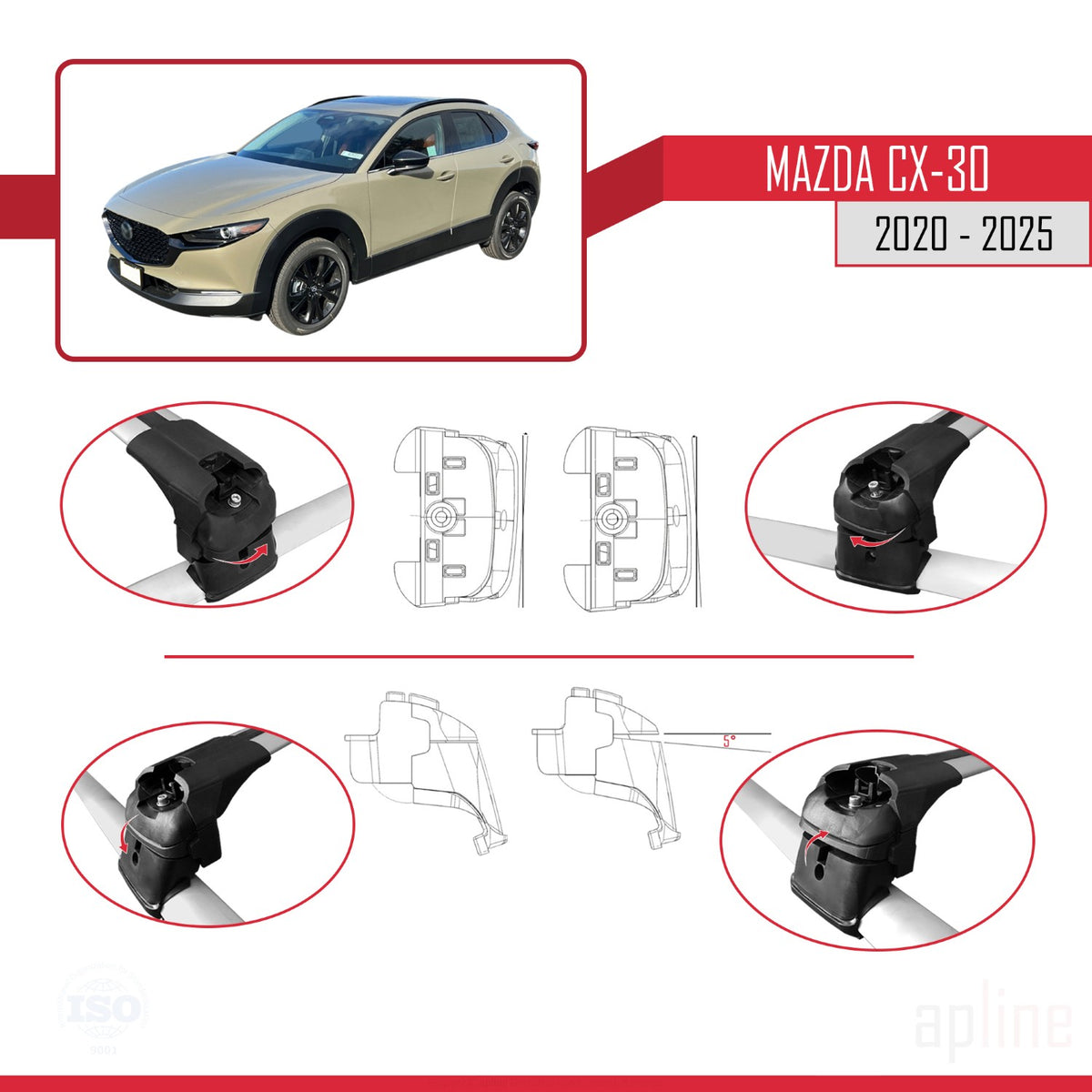Mazda CX-30 2020-2025 ace2 Car Roof Rack Cross Bar Grey Aluminium 2 Bars