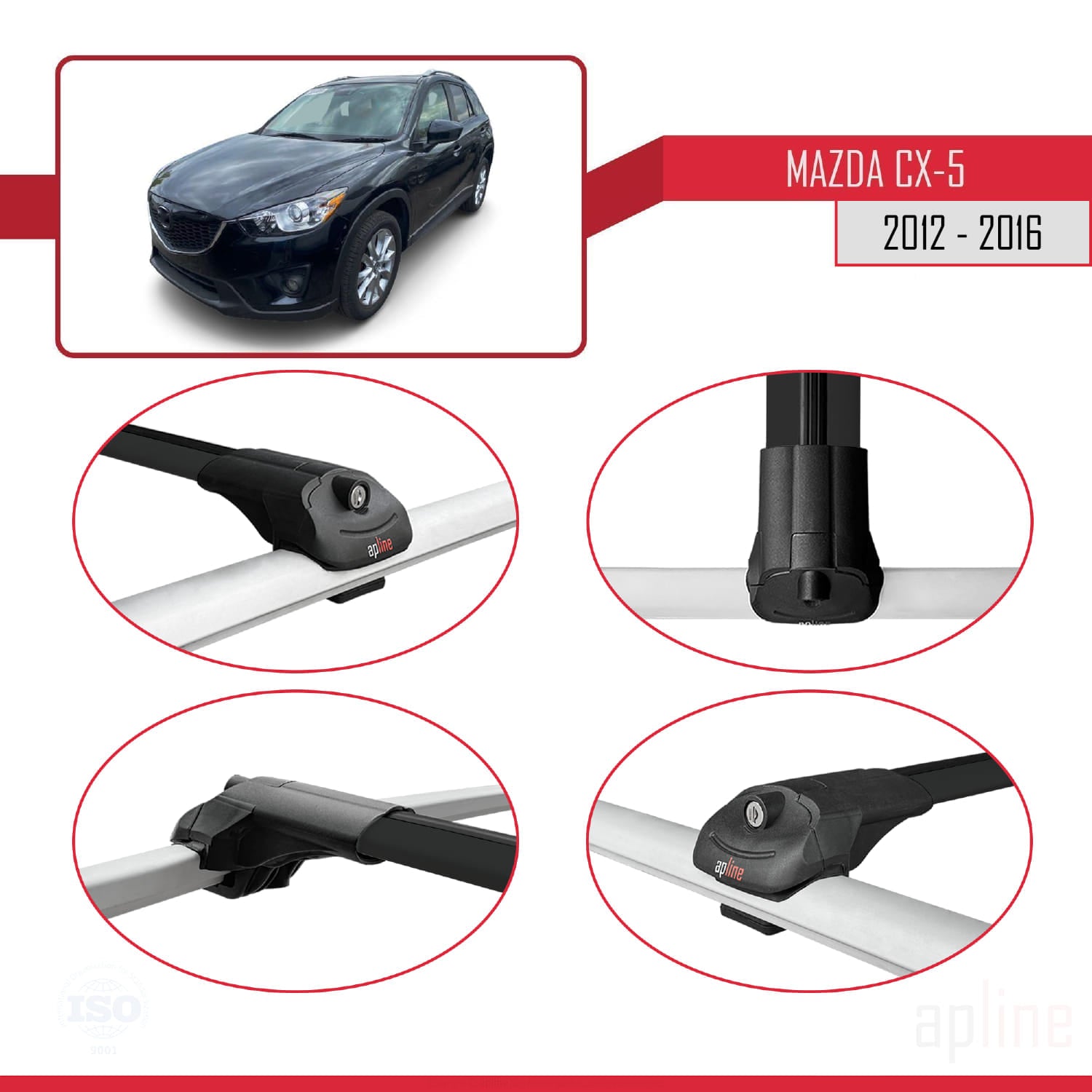 Mazda CX-5 I (KE) 2012-2016 ACE-1 Car Roof Rack Cross Bar Black Aluminium 3 Bars